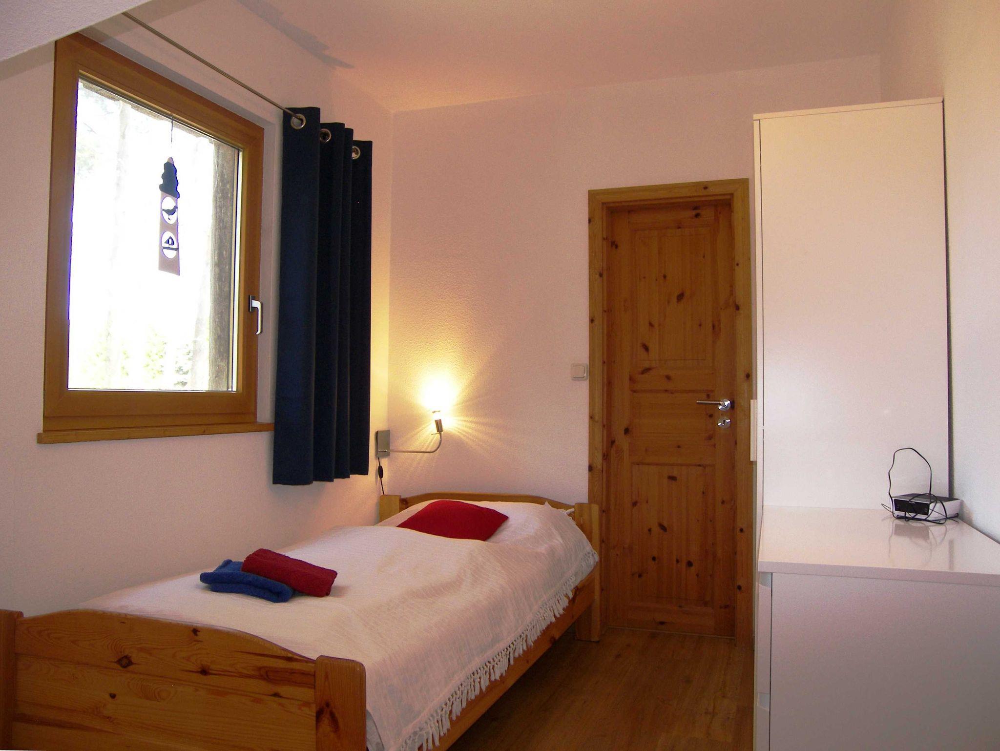 Die NICHTRAUCHER-Wohnung mit Balkon verfügt über Parkettfußböden und ist 38 qm groß. Das Wohnzimmer ist mit einem Flachbildfernseher, CD/MD-Radio und Essplatz ausgestattet. Über Kabel empfangen Sie alle gängigen TV-Kanäle. Das erste Schlafzimmer verfügt über zwei getrennt stehende Einzelbetten und einen Radiowecker, das zweite Einzelschlafzimmer ist mit einem Einzelbett ausgestattet. Das Badezimmer verfügt über Dusche/WC und Haartrockner. Zusätzlich gibt es ein separates Gäste-WC.