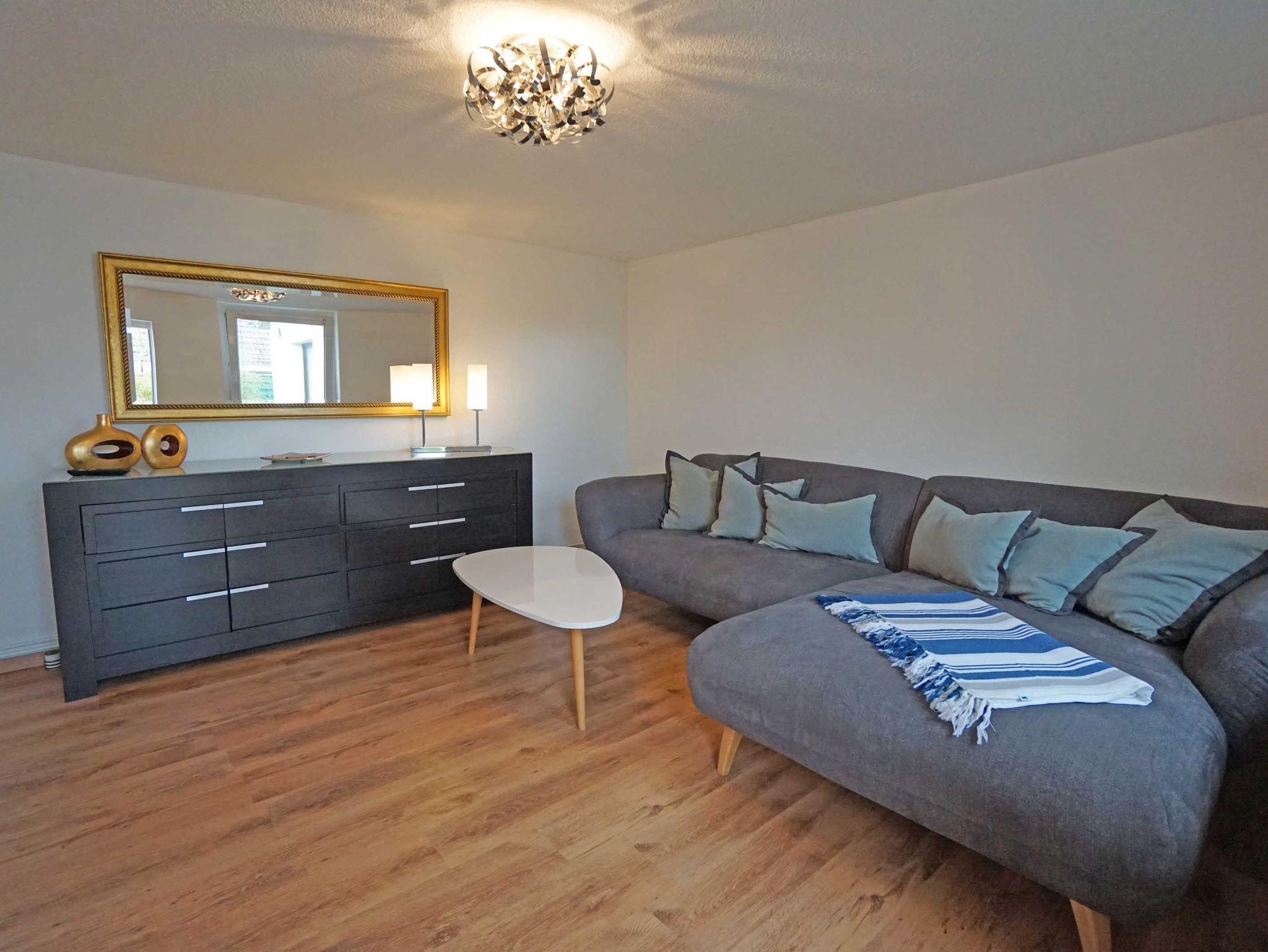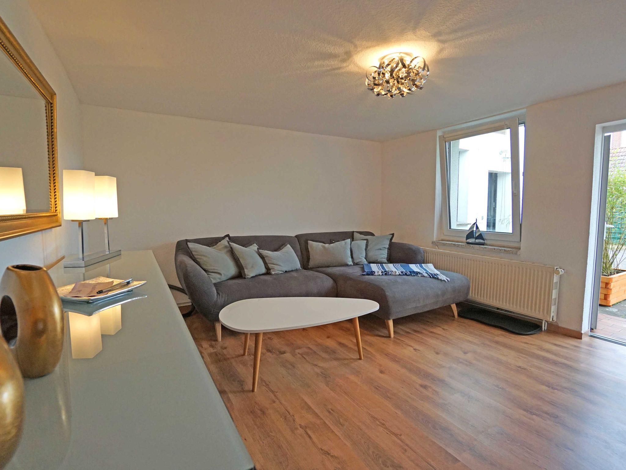 Lütte Liebe, 3-Zimmer-Wohnung 55 m2, im Erdgeschoss. Modern und gemütlich eingerichtet: Wohnzimmer mit Sat-TV, Radio und CD. Ausgang zur Terrasse. Durchgangszimmer mit 1 Doppelbett (160cm breit). 1 Doppelzimmer (160cm breit). Kochnische (4 Kochplatten, Backofen, Geschirrspüler, Toaster, Wasserkocher, Mikrowelle, elektrische Kaffeemaschine) mit Esstisch. Dusche/WC. G-Heizung. Terrasse teilweise überdacht. Terrassenmöbel. Zur Verfügung: Kinderhochstuhl, Babybett. Internet (Wireless LAN, gratis). Bitte beachten: Nichtraucher-Unterkunft. Haustiere/Hunde erlaubt. Rauchmelder.