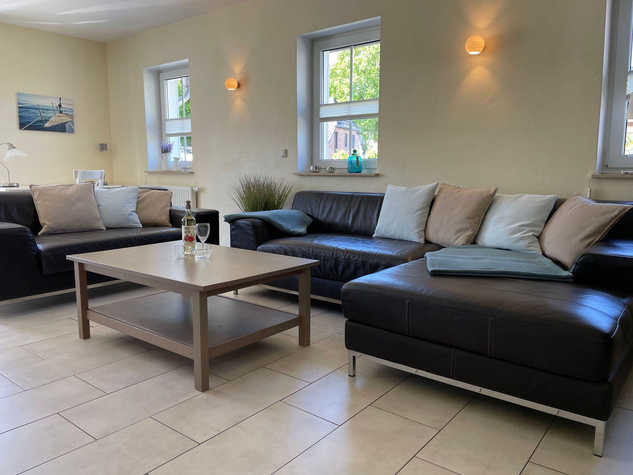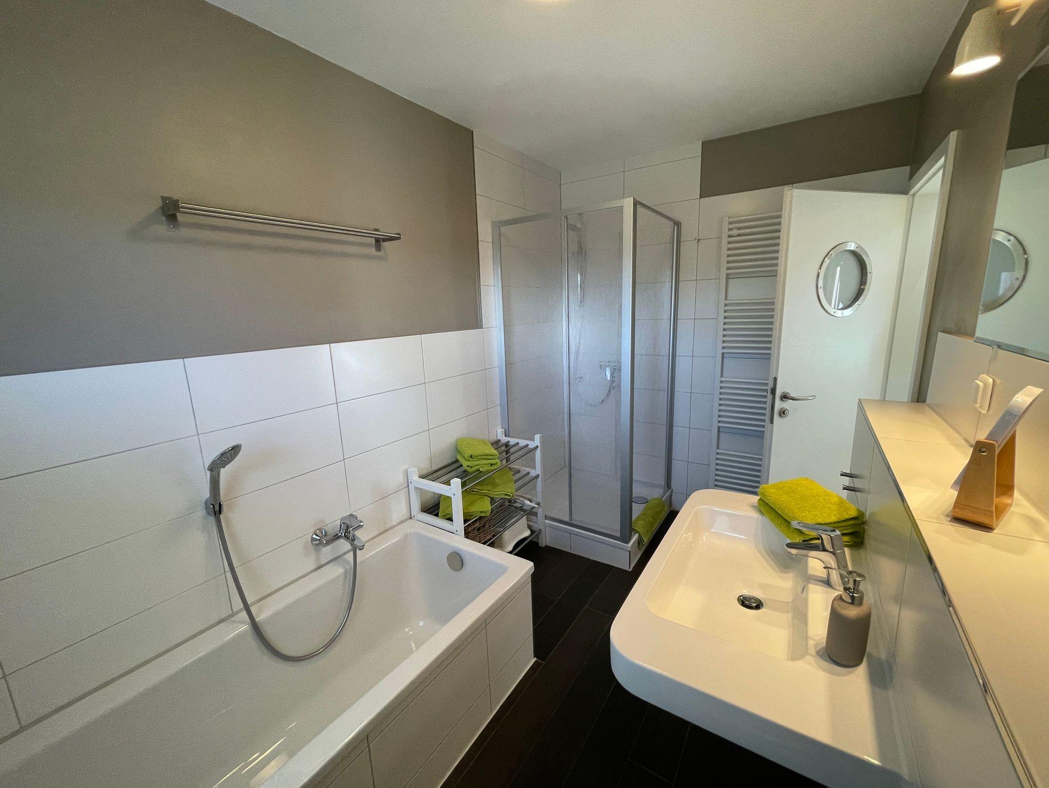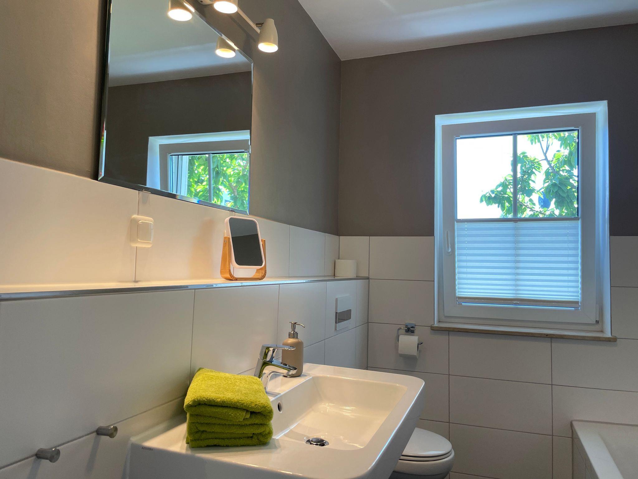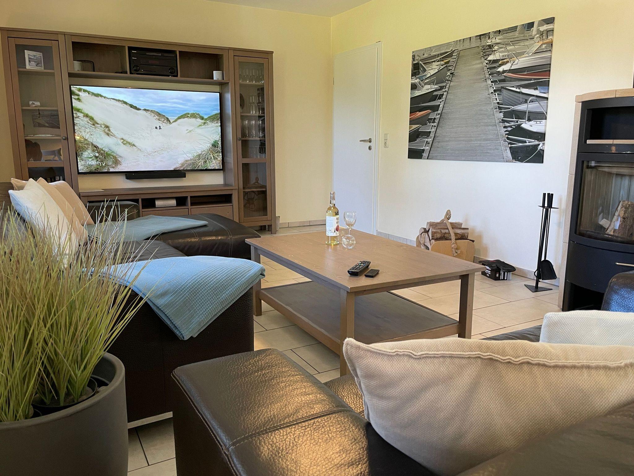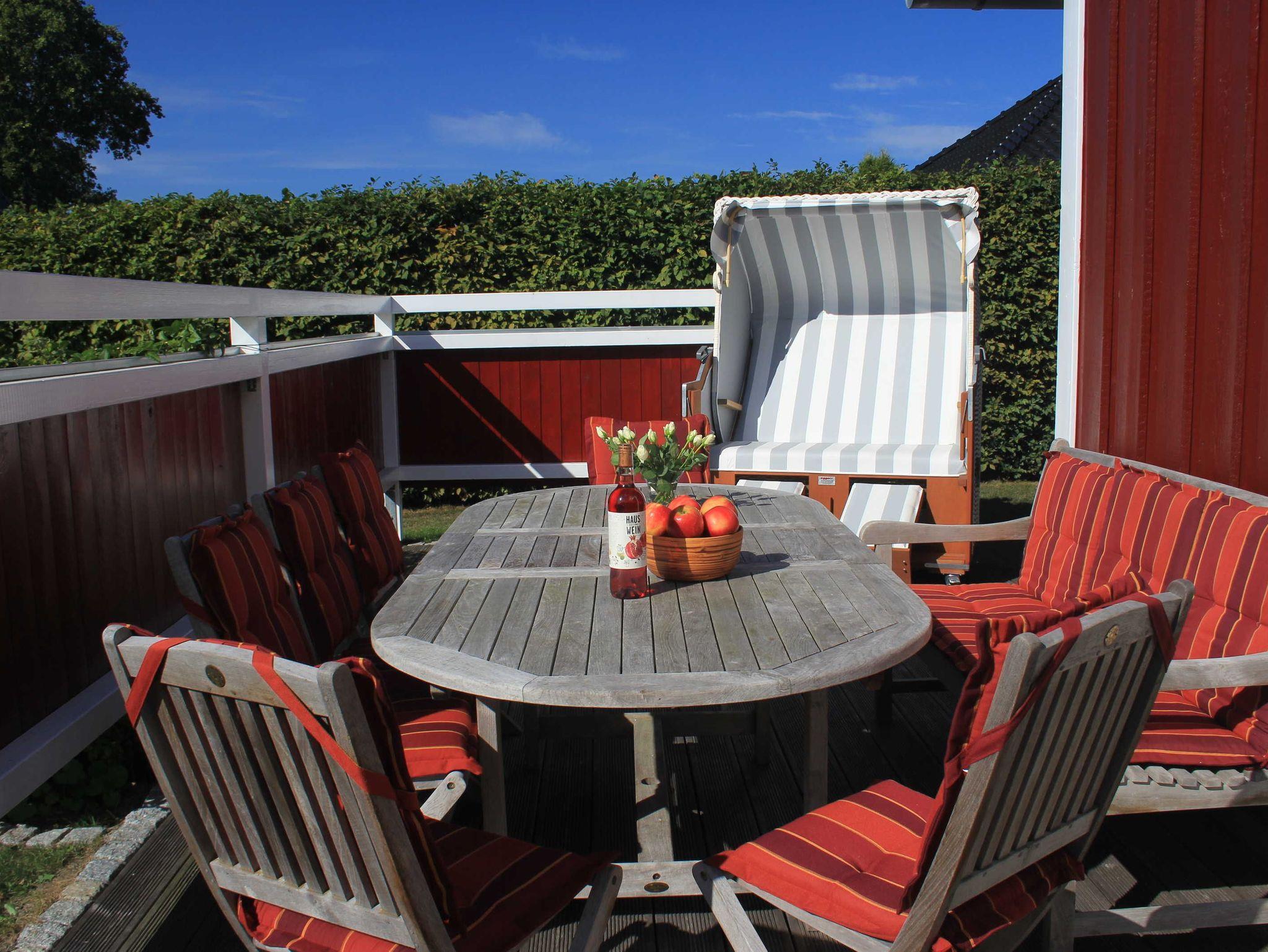 Flachbildfernseher 102cm, zweiter Smart TV im OG, DVD, Satellitenanschluss, CD-Spieler, Stereoanlage und Dolby-Surround, Lektüre, Waschmachine, Holzterrasse in Südausrichtung mit Teakmöbeln für 8 Personen, Strandkorb, Sonnenschirm, Edelstahl-Grill, 2 x Stellplatz für PKW, Garage/ Fahrradgarage, Zentralheizung, Garten mit viel Grün, Anzahl Personen: 1- 6 Personen, Nichtraucherhaus.