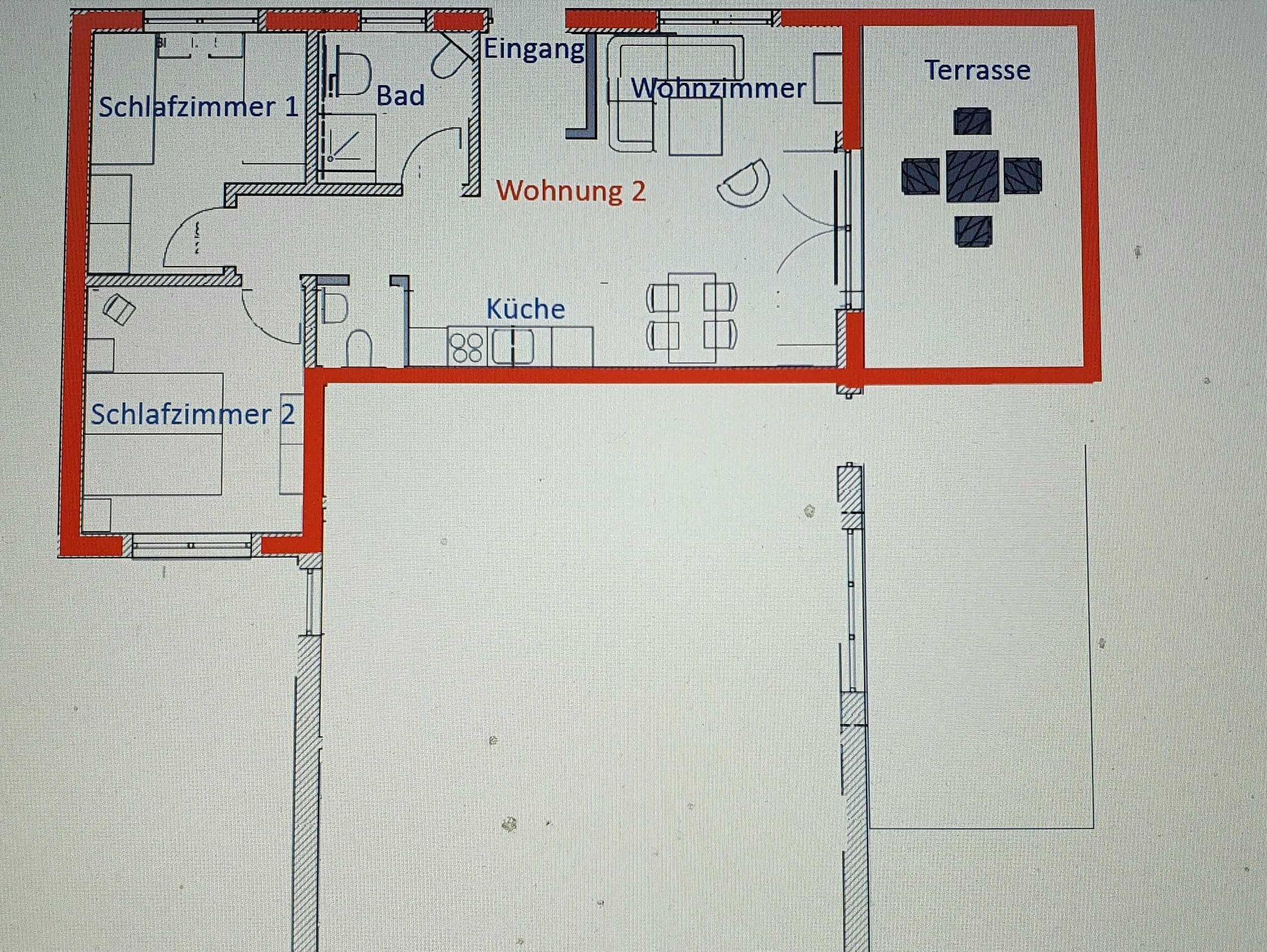 Die Wohnung 2 befindet sich im Erdgeschoss. Diese helle, großzügige Wohnung empfehlen wir gerne Familien oder Urlaubsgästen, die mit mehr als 2 Personen reisen möchten. Für genug Privatsphäre sorgen 2 getrennte Schlafbereiche. Eines der beiden Schlafzimmer ist ganz klassisch mit einem Doppelbett möbliert. Das Andere ist mit 2 getrennt stehenden Betten ausgestattet. Selbstverständlich müssen Sie nicht auf genug Stauraum im Kleiderschrank und beleuchtete Nachttische verzichten. Für Schlafkomfort sorgen verstellbare Lattenroste und hochwertige Federkernmatratzen. In der Wohnung stehen Ihnen ein Badezimmer mit ebenerdiger Dusche sowie ein zusätzliches separates Gäste-WC zur Verfügung.