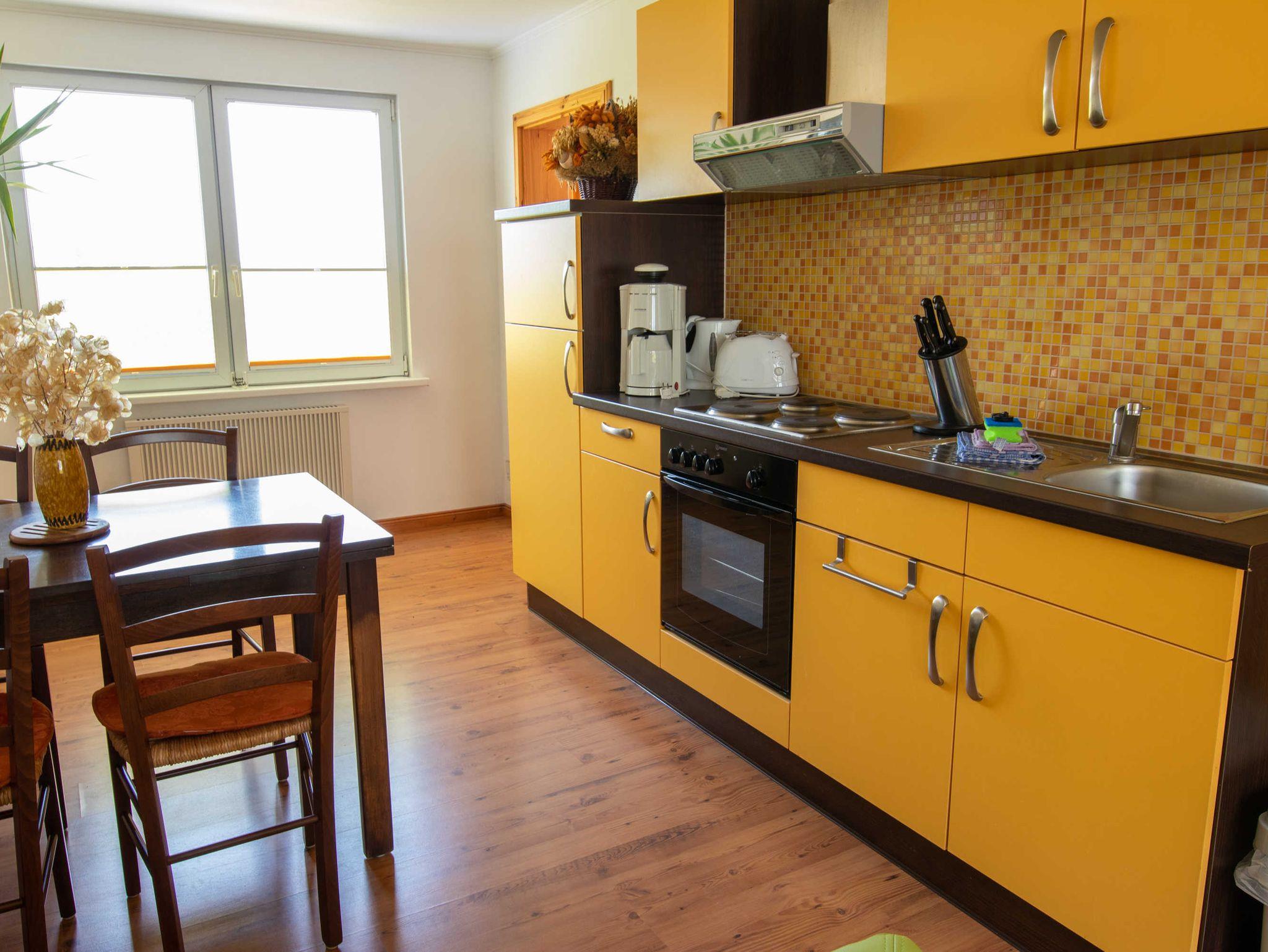 Die Ferienwohnung Ostseeoase befindet sich in der 1. Etage des Ferienhauses. Die Wohnung verfügt über ein großes, lichtdurchflutetes Wohn- und Esszimmer, zwei separate Schafzimmer, ein Duschbad mit Fenster sowie eine Sitzgelegenheit im Freien mit hochwertigen Polyrattan-Balkonmöbeln. Ein Blickfang des kombinierten Wohn- und Esszimmers sind die sonnengelbe Küchenzeile und die großzügige Sofagarnitur aus lindgrünem Kunstleder. Zwei Glasvitrinen, ein Esstisch mit vier Stühlen, ein High- und ein Lowboard sowie ein Couchtisch in sattem dunkelbraun runden das Bild ab. Das Eltern- und das Kinderschlafzimmer sind mit Kiefer-Naturholzmöbel, bestehend aus einem 160 cm breitem Doppelbett mit 2 Nachtschränkchen, einem Tandembett, einer Wäschetruhe und zwei 2-türigen Kleiderschränken, eingerichtet. Ein Flachbildschirm-TV und ein CD-Player mit Radio komplettieren das Ganze. Die mit Töpfen, Pfannen, Geschirr, Besteck, Gläsern und Küchenuntensilien ausgestattete Küchenzeile schließt sich dem Wohnbereich an. Sie verfügt zudem über eine Kaffeemaschine, einen Toaster, einen Wasserkocher, einen Eierkocher, einen Elektroherd mit 4 Herdplatten und einen Backofen. Das moderne Duschbad eröffnet Ihnen einen wunderbaren Blick auf das Kirchenschiff und liegt zwischen dem Eltern und Kinderschlafzimmer. Außer im Nassbereich ist die komplette Ferienwohnung mit Laminat ausgelegt. Die Ostseeoase ist eine farblich abgestimmte und geschmackvoll eingerichtete Ferienwohnung im ruhigen Herzen von Zinnowitz. Sie bietet ausreichend Platz für einen erholsamen und entspannten Urlaub. Für Kurzweil am Abend sorgen außerdem diverse Karten-, Brett- oder Würfelspiele, die Ihnen in der Wohnung zur Verfügung stehen.