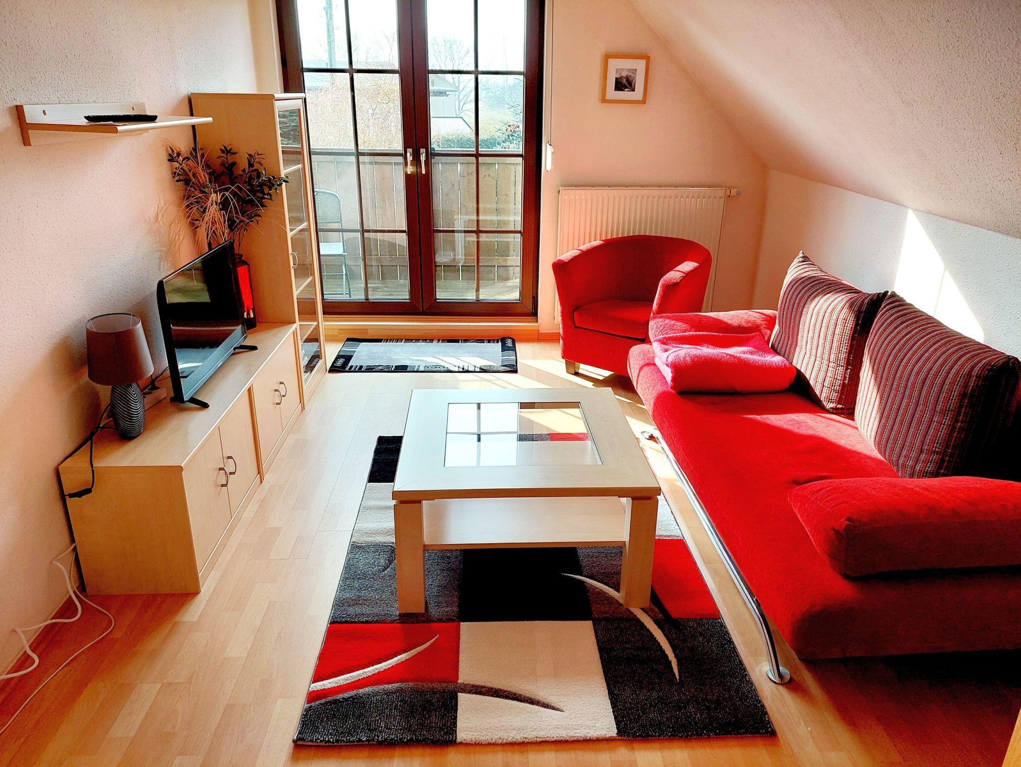 Über die Treppe gelangen Sie ins Obergeschoss (mit charmanten Dachschrägen), wo eine weitere Diele auf Sie wartet. Hier erwartet Sie ein gemütlicher Wohnraum mit Sitzgruppe und Zugang zum Balkon ? der perfekte Ort, um den Tag bei einem Glas Wein ausklingen zu lassen.