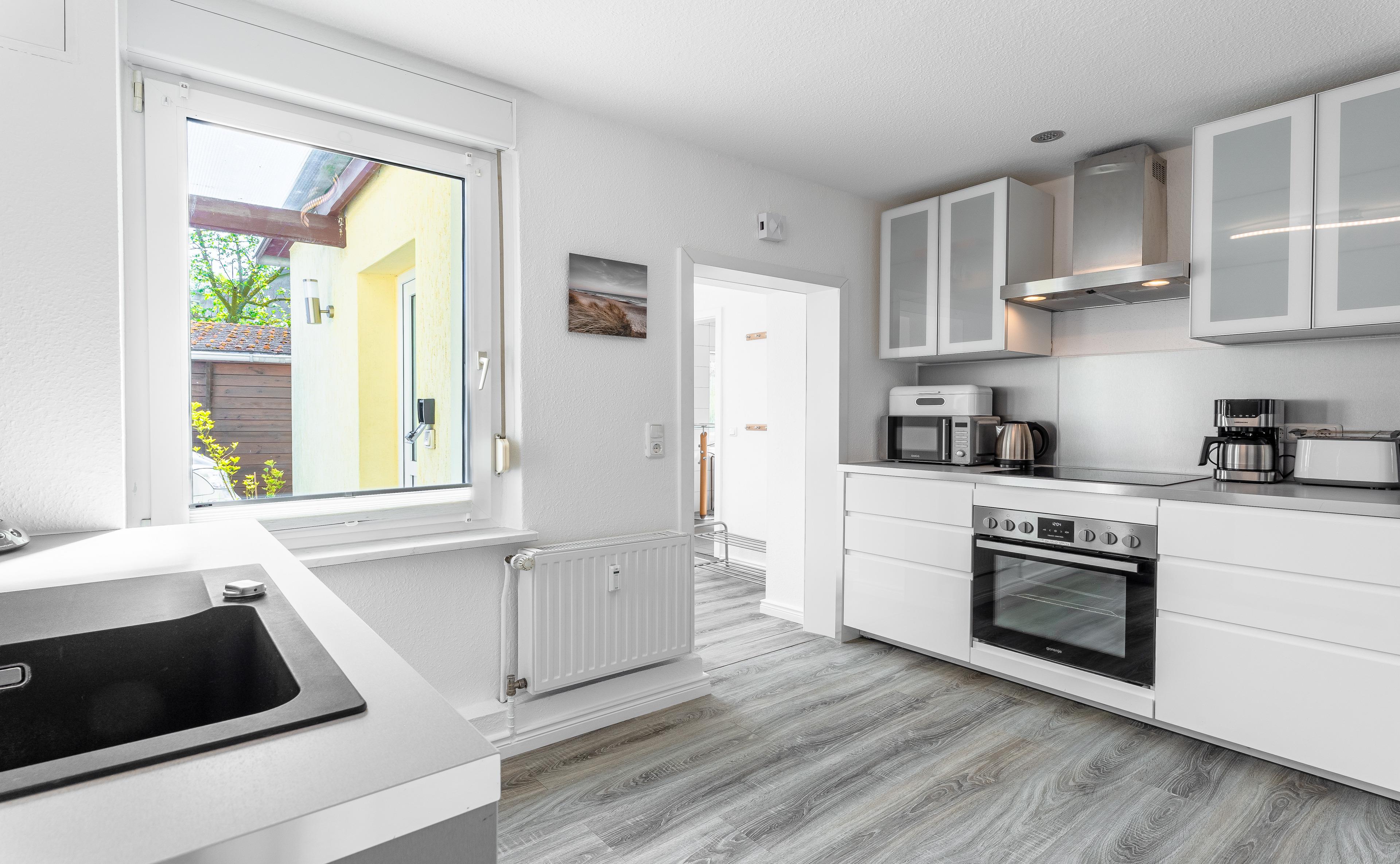 Sie suchen nach einem großzügigen Raum für kostbare Zeit mit Ihren Liebsten? Willkommen in unserer 72 qm großen Ferienwohnung "Morgensonne"! Diese Erdgeschosswohnung in der liebevoll sanierten Villa Helga bietet Paaren und Familien genügend Platz für bis zu sechs Personen. Das Schlafzimmer verfügt über ein großes 180 cm breites Doppelbett und ein Etagenbett mit zwei 90 cm breiten Matratzen. Ein zweites Schlafzimmer bietet zusätzlich ein 140 cm breites Doppelbett für etwas mehr Privatsphäre. Die moderne Einbauküche ist komplett ausgestattet mit einer großen Kühl- und Gefrierkombination, Geschirrspüler, Induktionskochfeld mit Backofen, Mikrowelle, Wasserkocher, Kaffeemaschine, Senseo-Kaffeepad Maschine, Toaster und Eierkocher. Beginnen Sie Ihren Tag am besten auf der schönen, geräumigen Terrasse – die Morgensonne begrüßt Sie gerne bei einem heißen Kaffee. Die zentrale Lage unserer Villa ermöglicht es Ihnen, spontan durch die charmanten Läden von Zinnowitz zu bummeln oder einen Besuch an der wunderschönen Seebrücke zu unternehmen. Lust auf einen erfrischenden Spaziergang am Ostseestrand? Nur 9 Gehminuten trennen Sie von dem kilometerlangen Sandstrand der Insel. Nach einem erlebnisreichen Tag erwartet Sie eine entspannende Badewanne zum Verwöhnen. Zum Abschluss eines romantischen Abends können Sie entweder den rustikalen Außengrill auf der Terrasse nutzen oder gemütlich am kuscheligen Kaminofen einen Rotwein genießen. Lassen Sie die Seele baumeln und entspannen Sie sich. In unserer Unterkunft bleiben keine Wünsche offen. Ob Sie mit dem Auto oder sportlich mit dem Fahrrad anreisen – wir bieten Ihnen selbstverständlich ausreichend Platz auf dem Grundstück. Doch das ist noch längst nicht alles! Kostenfreies WLAN, ein Smart-TV mit Streaming-Funktion, DAB-Radio, Föhn, Waschmaschine und für die Kleinsten Babybett und Hochstuhl – all das steht Ihnen zur Verfügung.