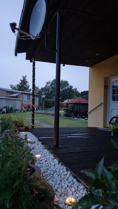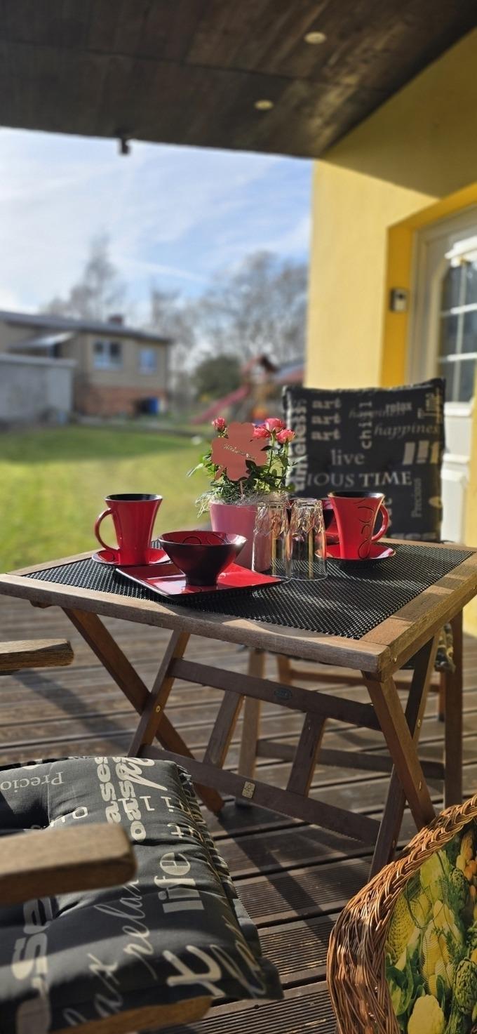 Das separate Ferienhaus mit Terrasse in ruhiger Lage befindet sich auf dem hinteren Grundstück vom Vermieter.