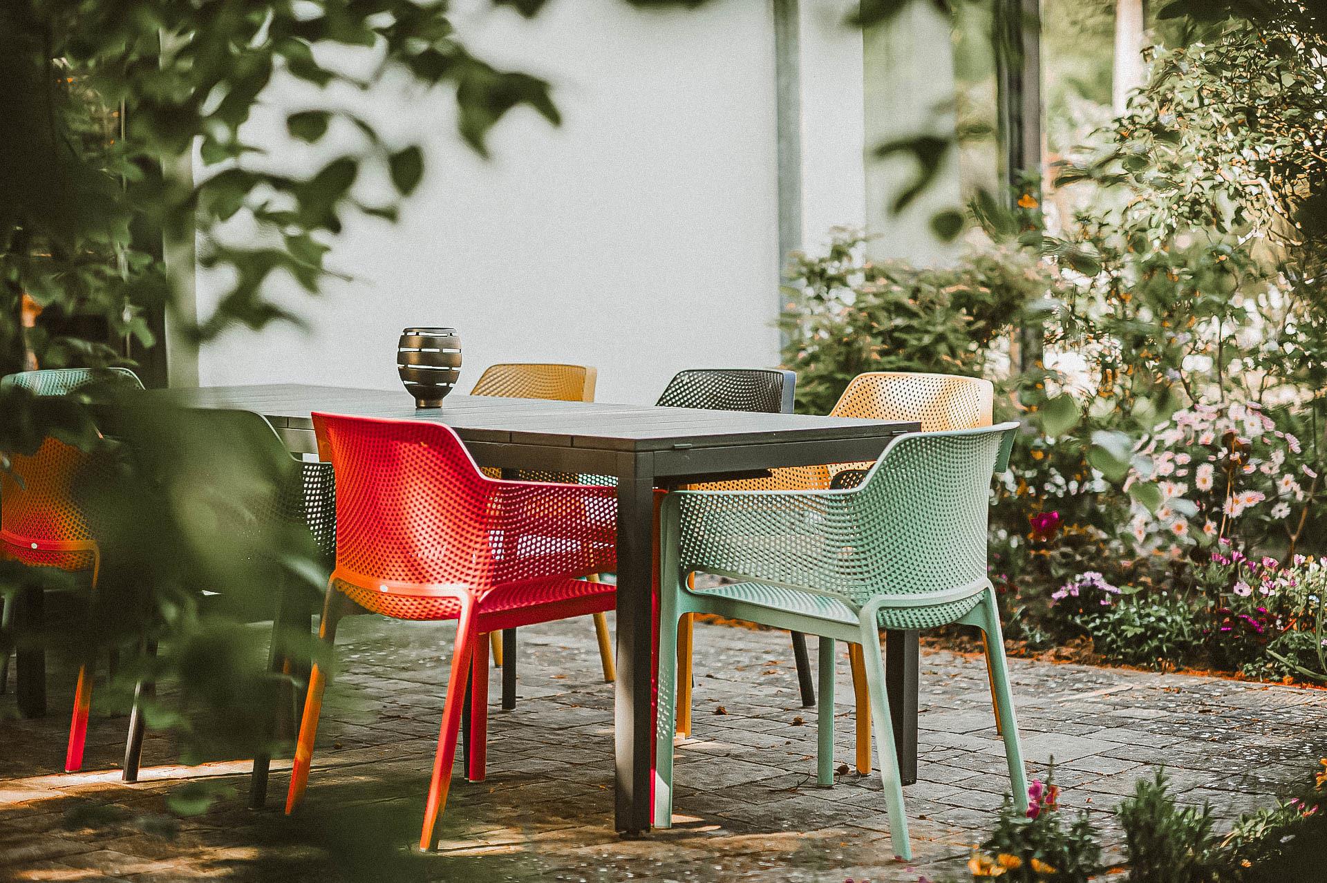 Die Sonne wandert in diesem Haus mit. Beginnen Sie Ihren Tag mit einem ausgedehnten Frühstück auf der an die Küche angrenzenden Sonnenterrasse neben einer stattlichen Buche mit Blick in den nahen Wald. Die farbigen Loungestühle der Terrasse vermitteln einen aufmunternden belebenden Eindruck. Auf der Hauptterrasse, die auf das Grundstück ausgerichtet ist, verfolgt Sie die Sonne bis in die späteren Nachmittagsstunden. Die etwas gediegenerenTerrassenmöbel laden mit angenehm höheren Polsterauflagen zum Verweilen ein. Hier steht ein großzügiger Grillofen bereit, an dem Sie sich zu fortgeschrittener Stunde auch erwärmen können.