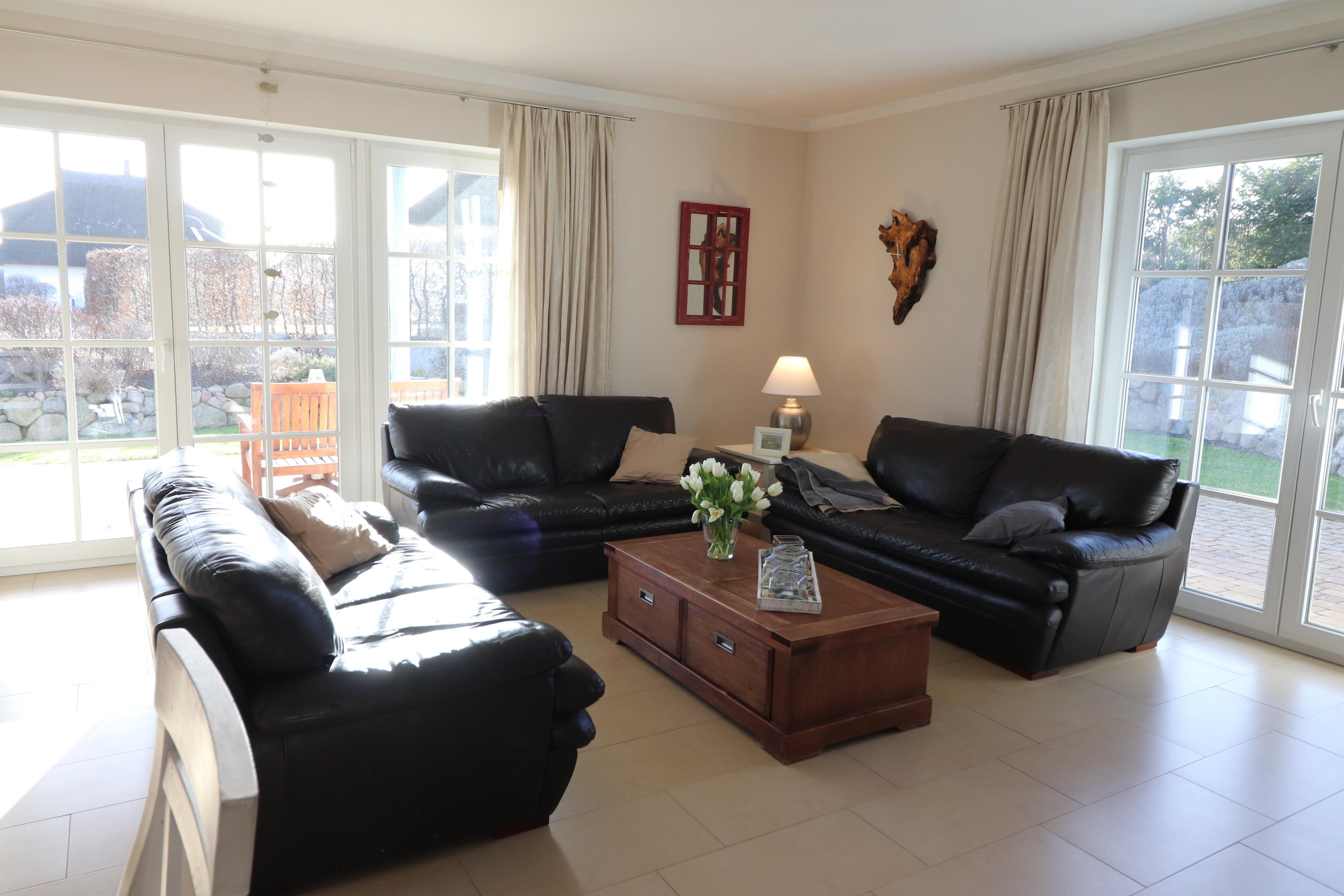 Das Ferienhaus ist komplett mit einer Fußbodenheizung aus Erdwärme ausgestattet. Auf Nachhaltigkeit wird geachtet. Das ruhige Naturschutzgebiet mit Deich am Achterwasser lädt zu ausgiebigen Spaziergängen ein und das 814 m² Grundstück zum Grillen und Ausruhen.
