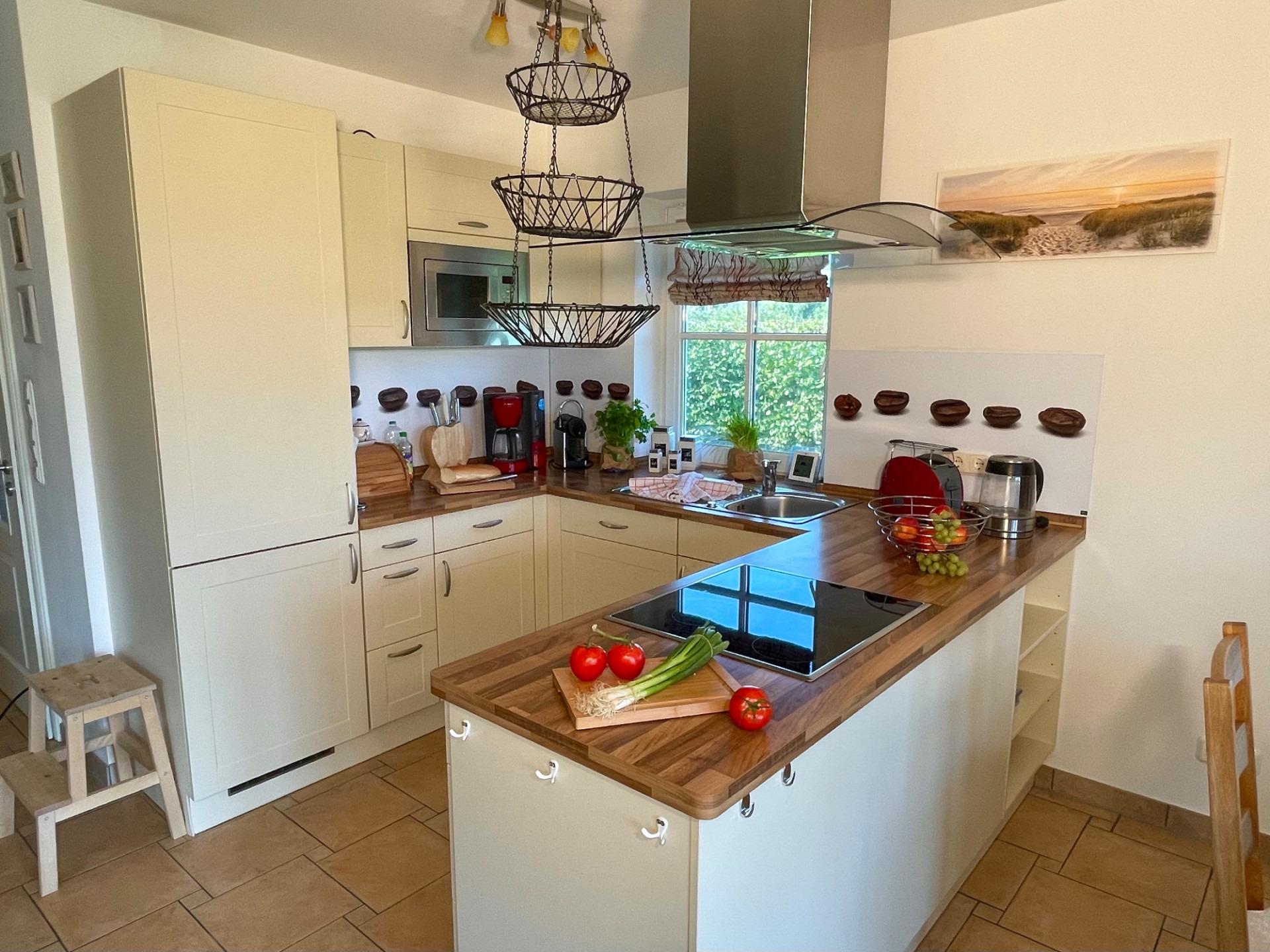 Die luxuriös ausgestattete Einbauküche lässt im Urlaub das gemeinsame Kochen zum Vergnügen werden. Das Wellnessbad mit Dusche und Sauna und ein weiteres Duschbad lassen den Tag schon entspannt beginnen. Das Highlight ist unser Außen-Whirlpool mit Blick auf Achterwasser, der ganzjährig (Wasser 36 Grad) genutzt werden kann.