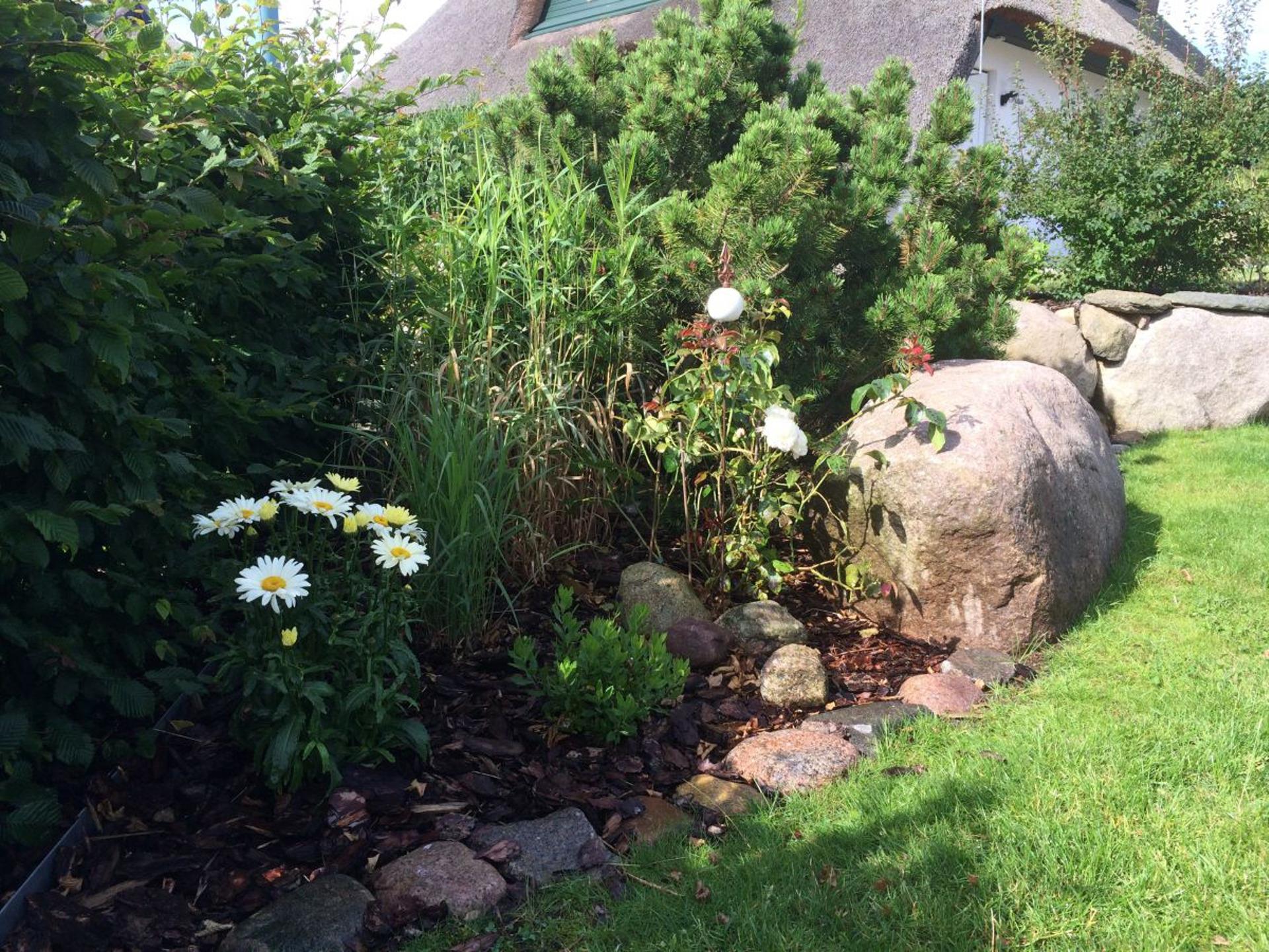 Im 115 qm großen, geräumigen und sonnendurchfluteten Reethaus befindet sich im EG eine gut ausgestattete Küche mit Blick auf die Essecke und das Wohnzimmer mit Kaminofen und Flachbild-TV, ein behagliches Schlafzimmer, Sauna und Badezimmer mit Dusche.