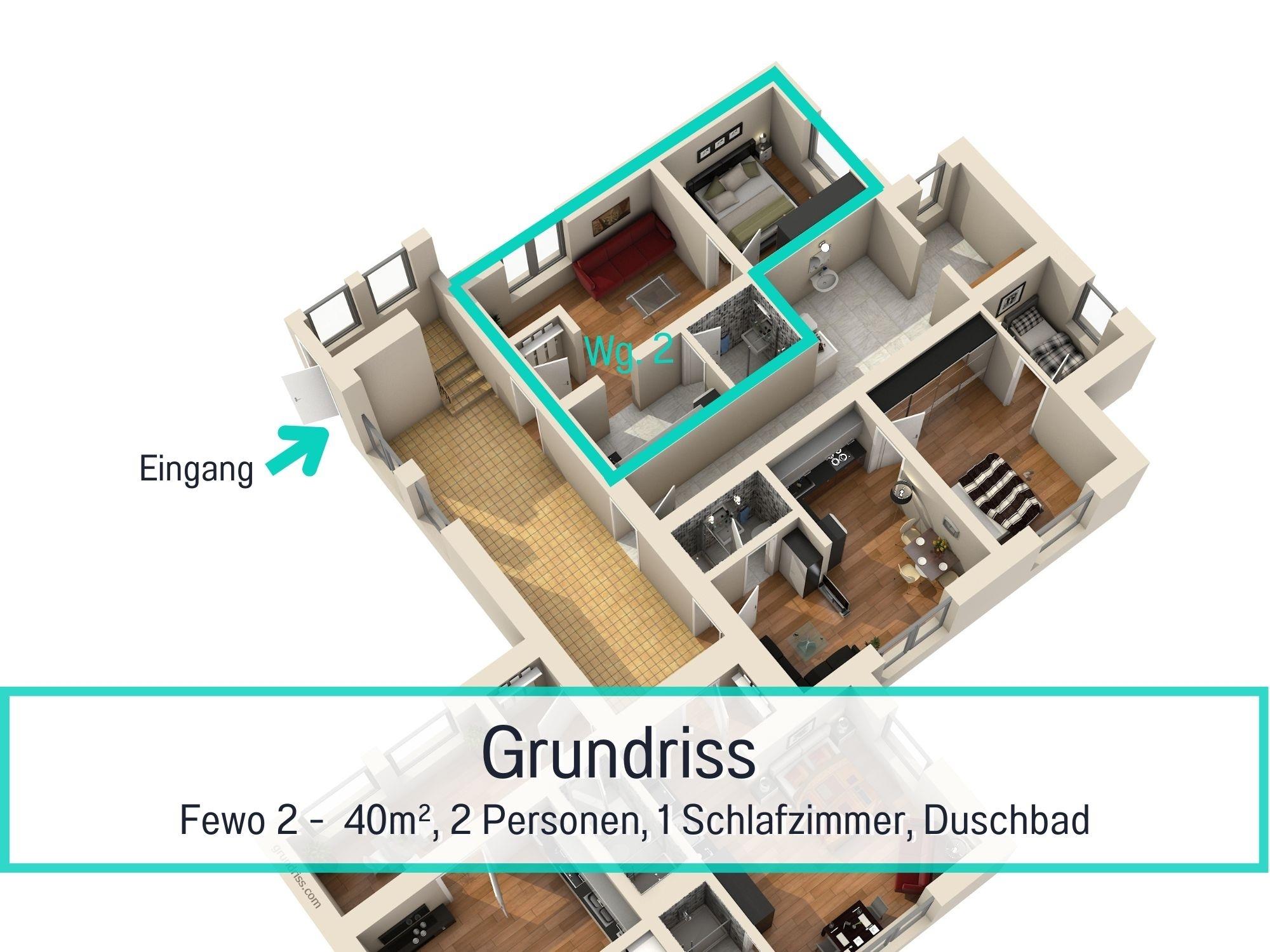 Unsere Fewo 2 bietet Ihnen einen ruhigen Rückzugsort für zwei Personen. Bettwäsche und Handtücher sind inklusive, Kaffee und Tee stehen bei Ankunft bereit. WLAN in allen Räumen, Parkplatz am Haus sowie ein eigener Fahrradraum mit E-Bike-Lademöglichkeit sorgen für einen unkomplizierten Aufenthalt.