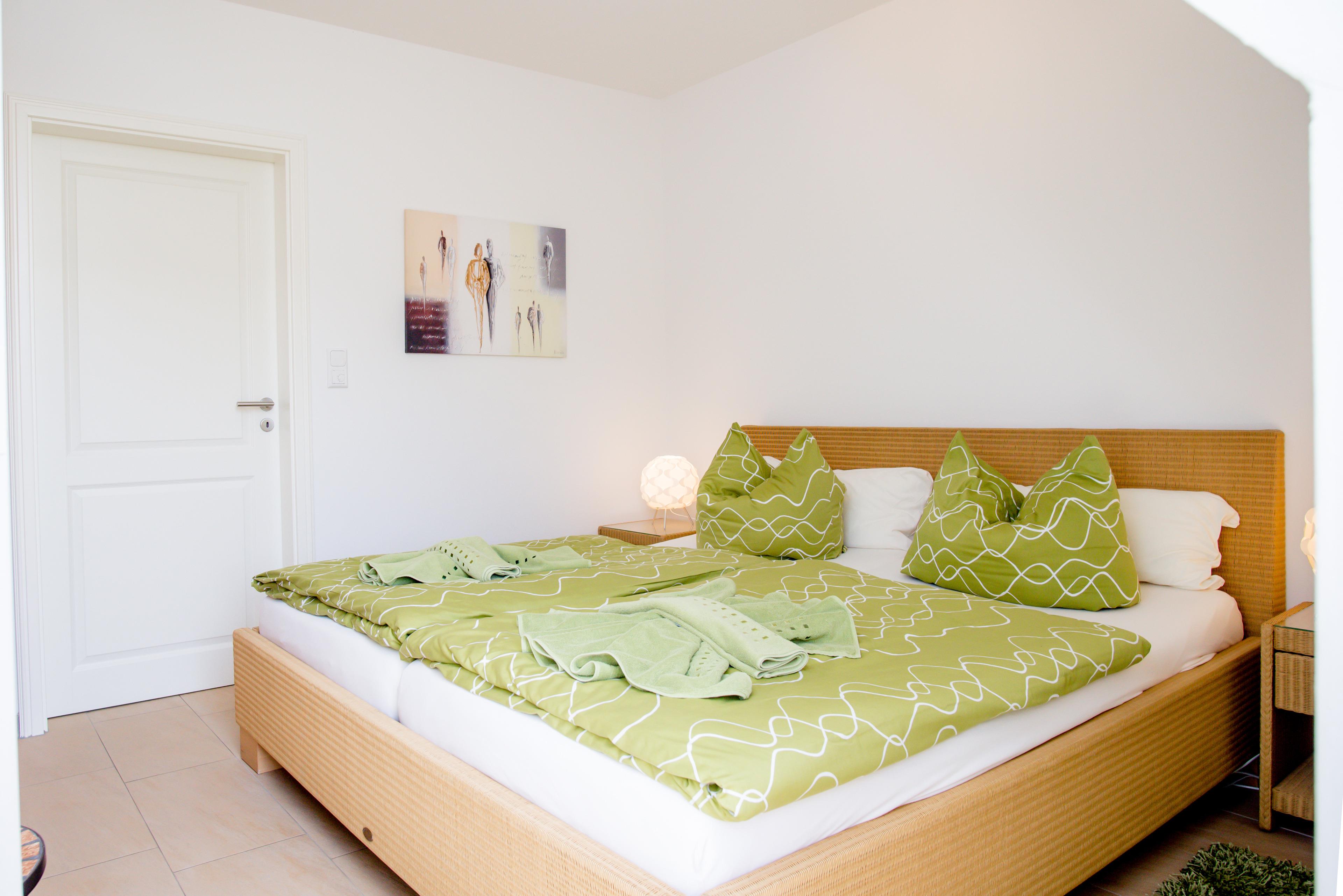 Im Obergeschoss gibt es ein weiteres Bad, ein großes Schlafzimmer mit TV und Babybett sowie ein Schlafzimmer mit Doppelbett.