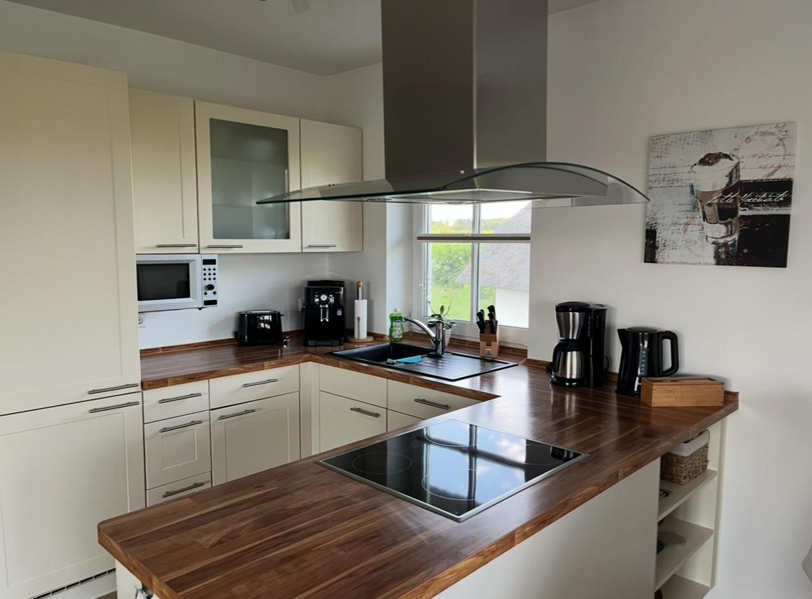 In einem kleinen Reetschuppen können Sie zum Beispiel Ihre Fahrräder unterstellen. Zwei PKW-Stellplätze am Haus sind ebenfalls kostenfrei zu nutzen. Auf der Terrasse können sie mit unserem Weber Elektrogrill schöne Abende verbringen .
