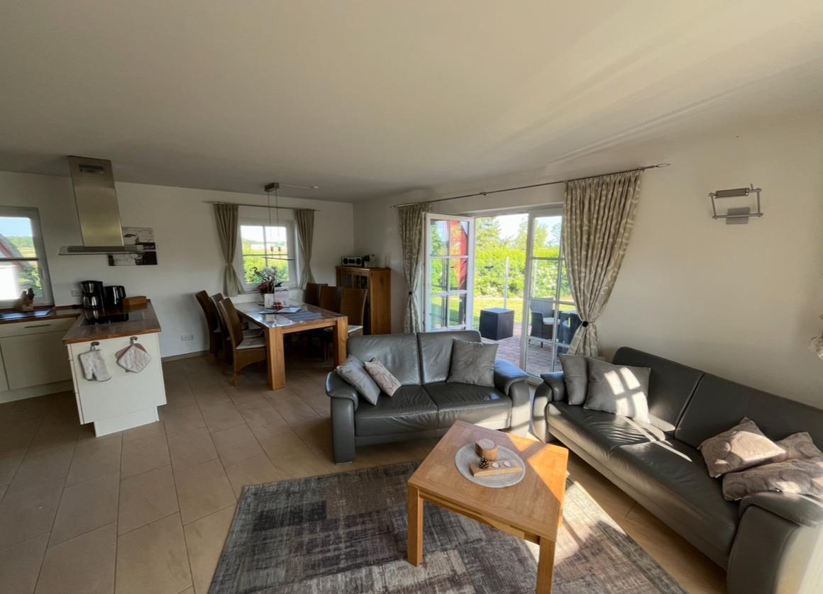 Unser Haus bietet Platz für 6 Erwachsene und ein Kleinkind (Babybett). Im Erdgeschoss befinden sich der Wohn- und Essbereich mit offener, voll ausgestatteter Küche, ein Kaminofen, ein Flachbild-TV sowie ein Schlafzimmer mit Doppelbett und eine Sauna im Bad.