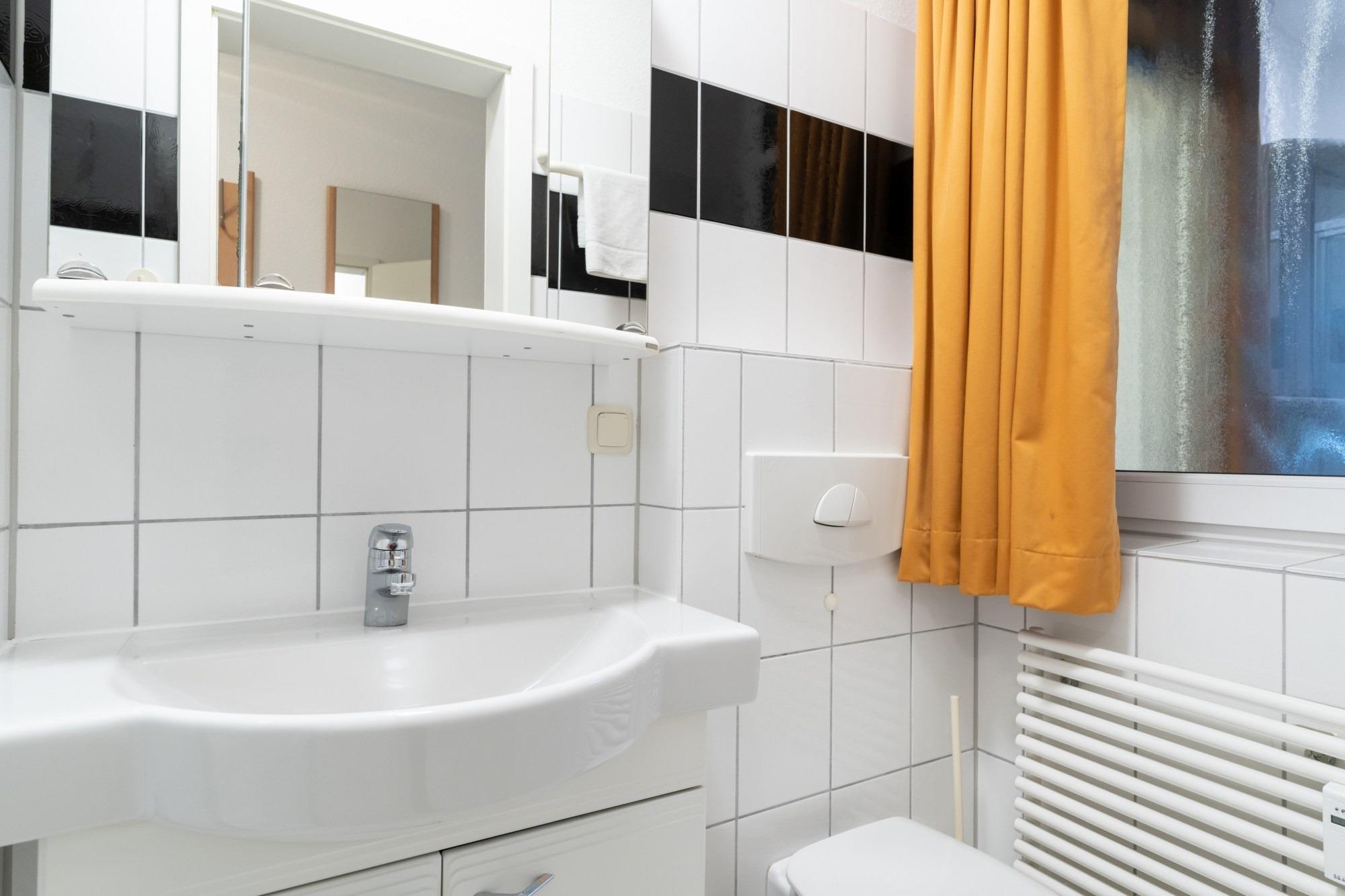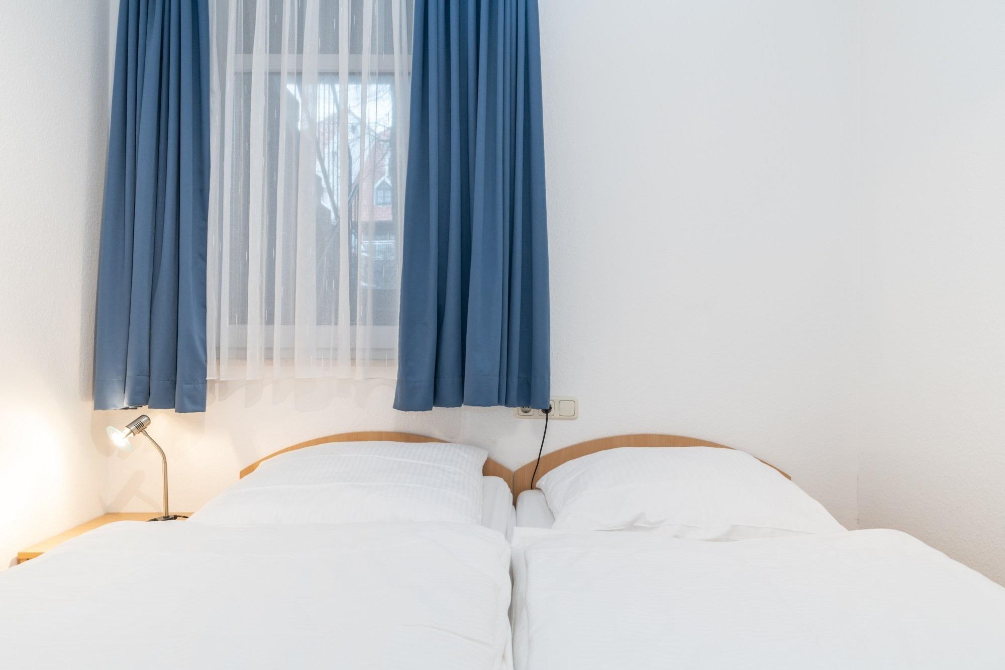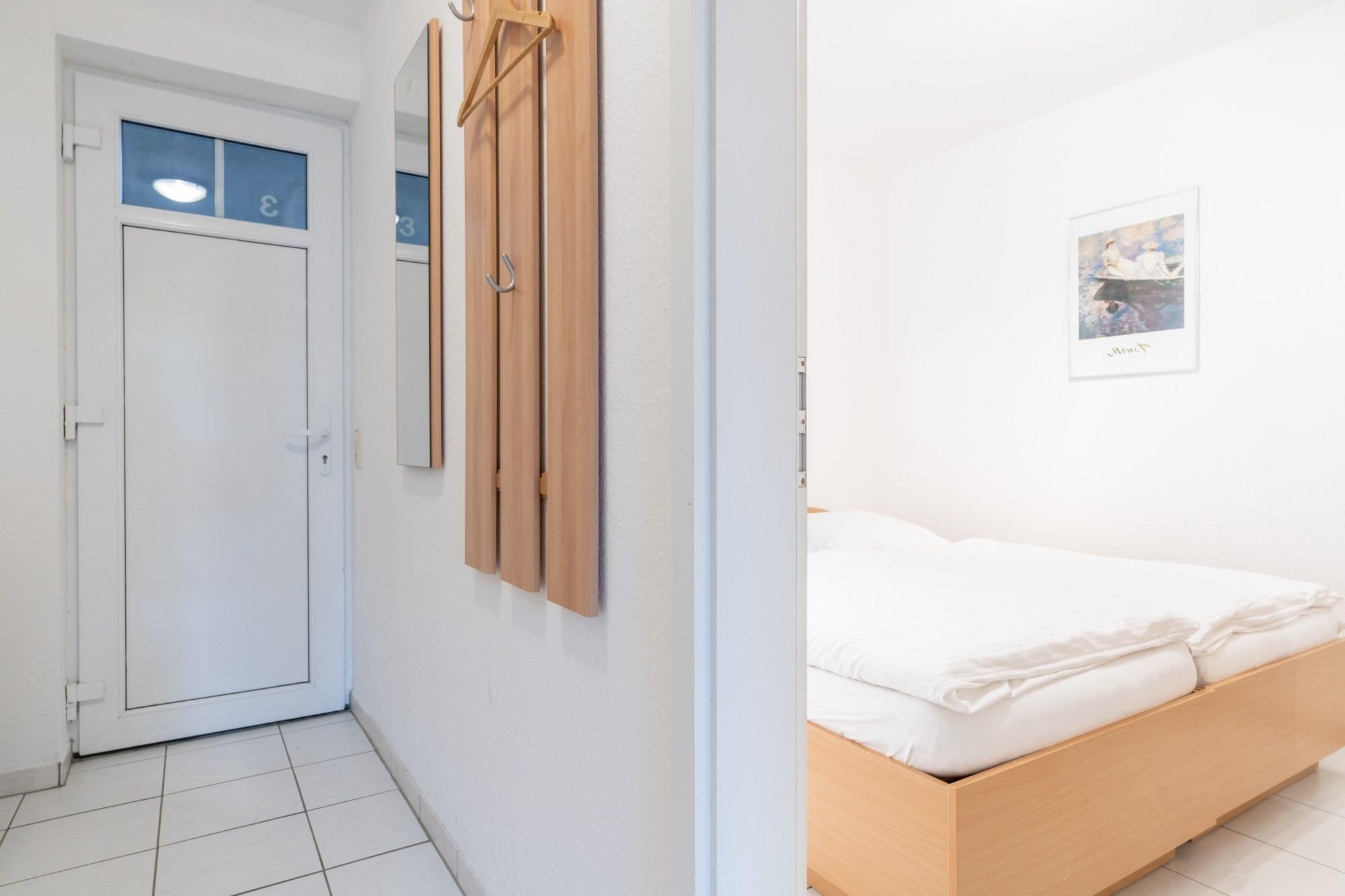 Die 36 m ² große Ferienwohnung 03 befindet sich im Erdgeschoss im Haus Roland (rechtes Gebäude vom Parkplatz aus gesehen). Sie bietet mit ihren zwei Zimmern ausreichend Platz für bis zu 4 Personen.