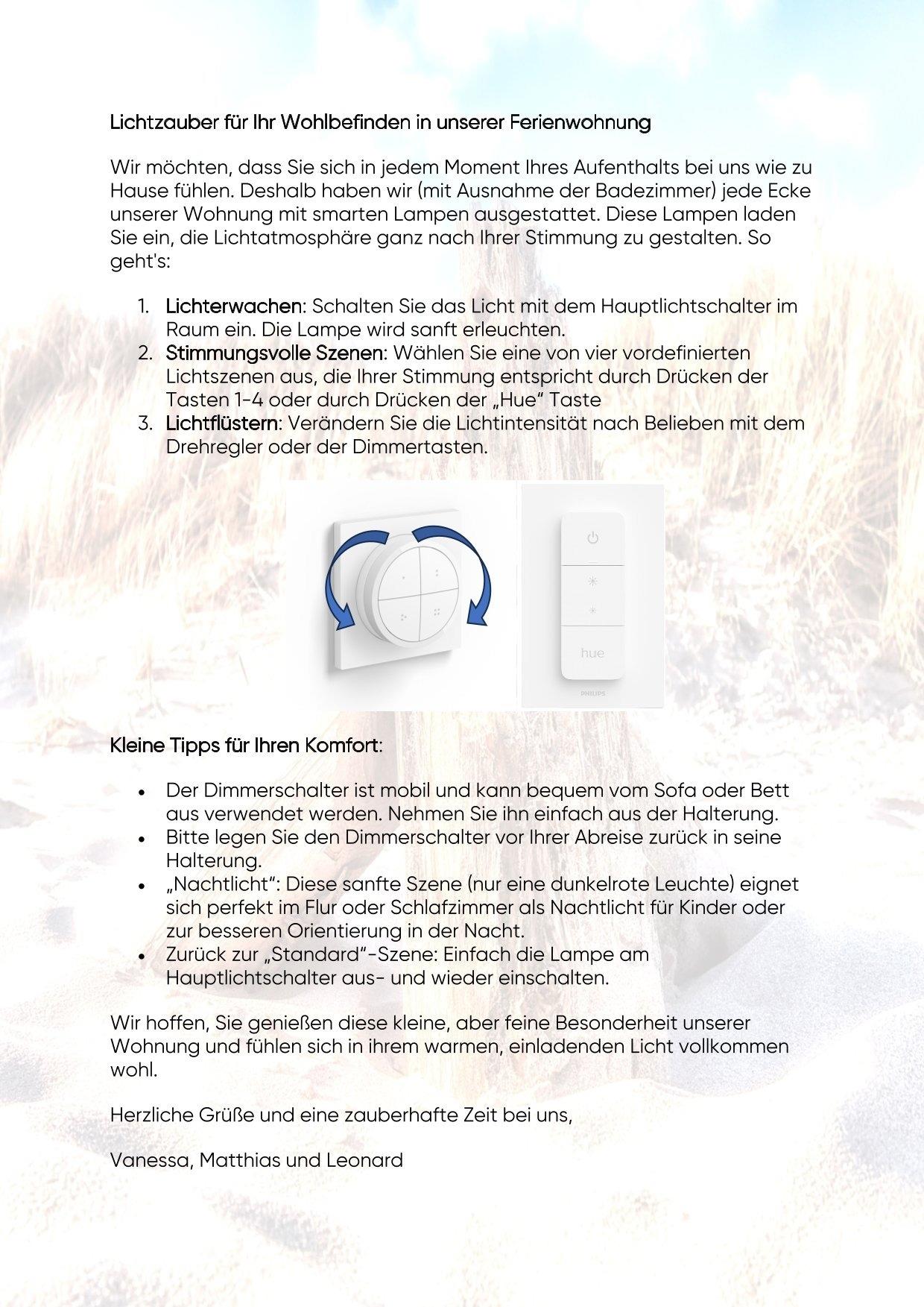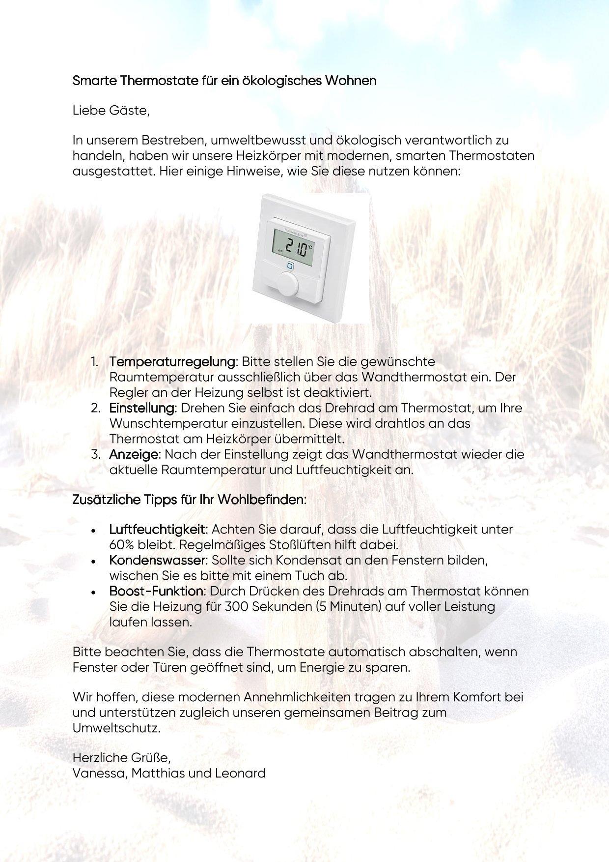 Die Wohnung ist mit smarten Heizungsthermostaten und Leuchtmitteln ausgestattet. Zudem verfügt das Apartment über ein elektronisches Türschloss für flexiblen Zugang zusätzlich zum Schlüssel.