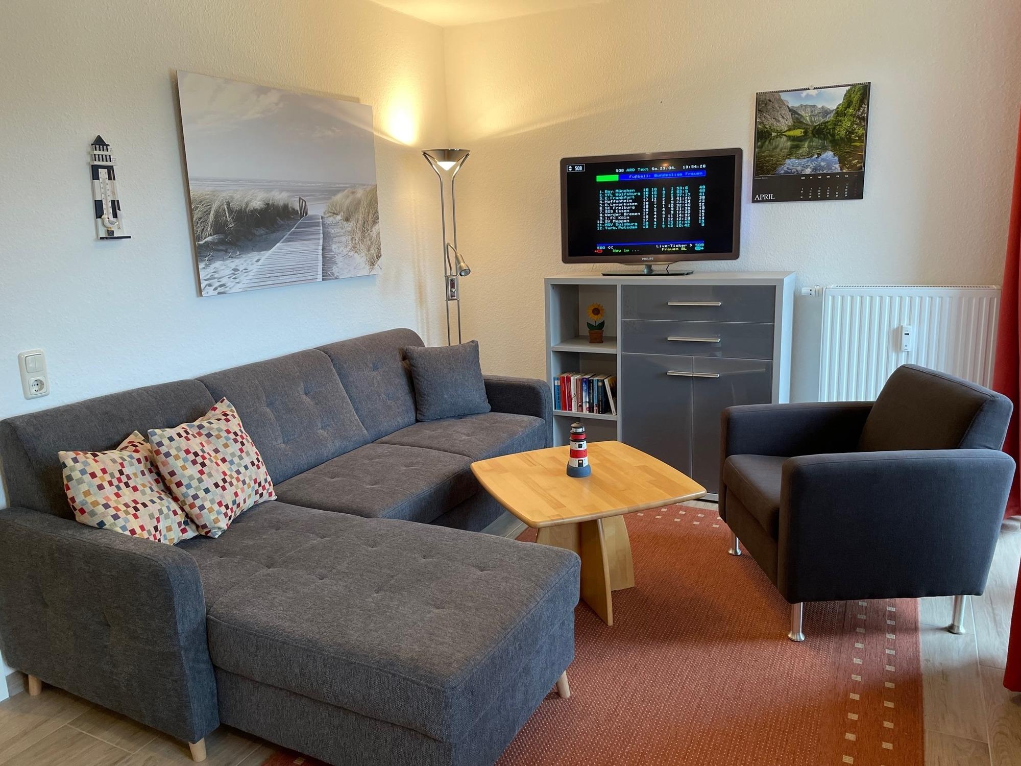 Im gemütlichen Wohnbereich laden bequeme Polstergarnituren und ein Flachbildfernseher zu geselligen Abenden ein. Der Essbereich ist im Wohnbereich integriert und ein Tisch mit 4 Stühlen bietet hier ausreichend Platz zum gemeinsamen Essen.