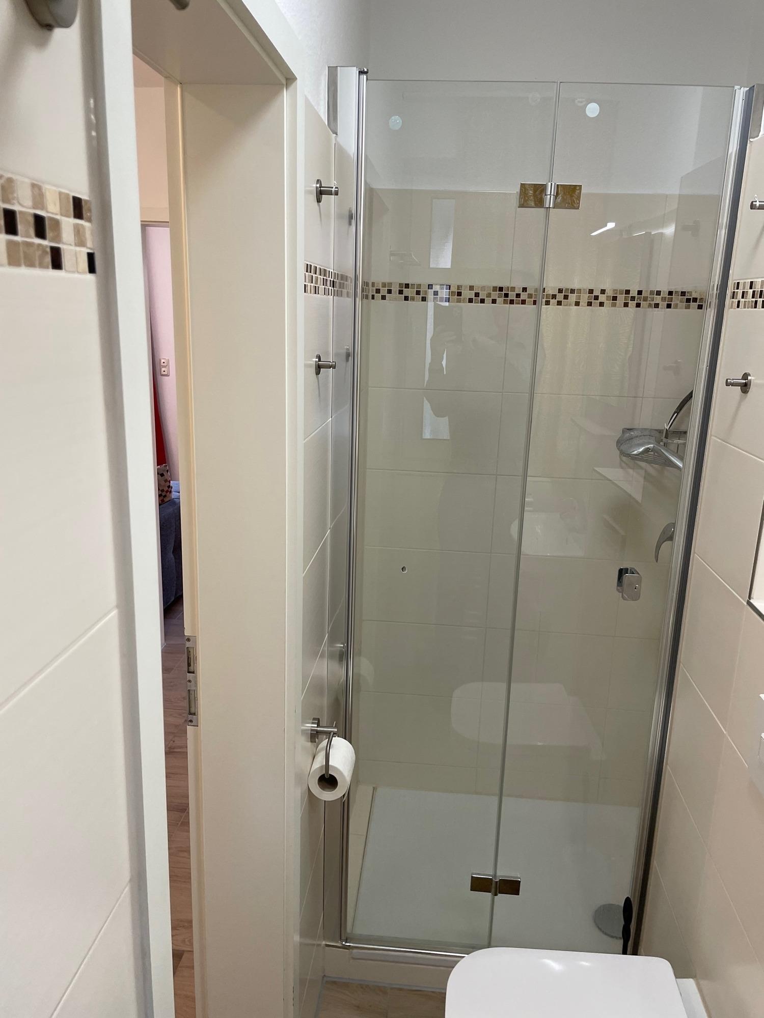 Die hier angrenzende Küchenzeile ist mit einem Kühlschrank mit Gefrierfach, einem Geschirrspüler und einem Backofen mit Cerankochfeld ausgestattet. Eine Kaffeemaschine, ein Toaster und ein Wasserkocher stehen Ihnen hier selbstverständlich zur Verfügung.