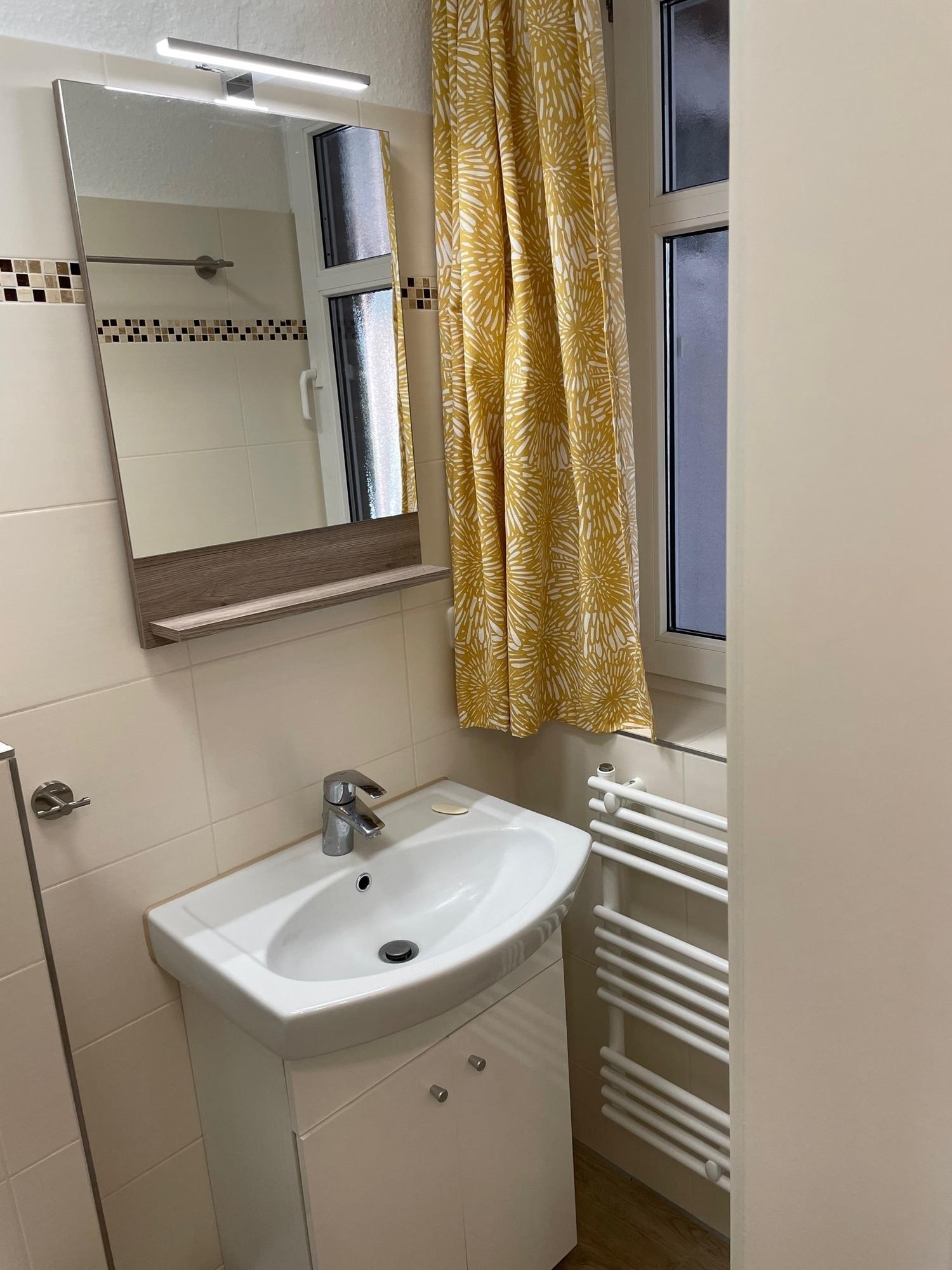 Die 36 m ² große Ferienwohnung 16 befindet sich in der 3. Etage im Haus Roland (rechtes Gebäude vom Parkplatz aus gesehen). Sie bietet mit ihren zwei Zimmern ausreichend Platz für bis zu 3 Personen.