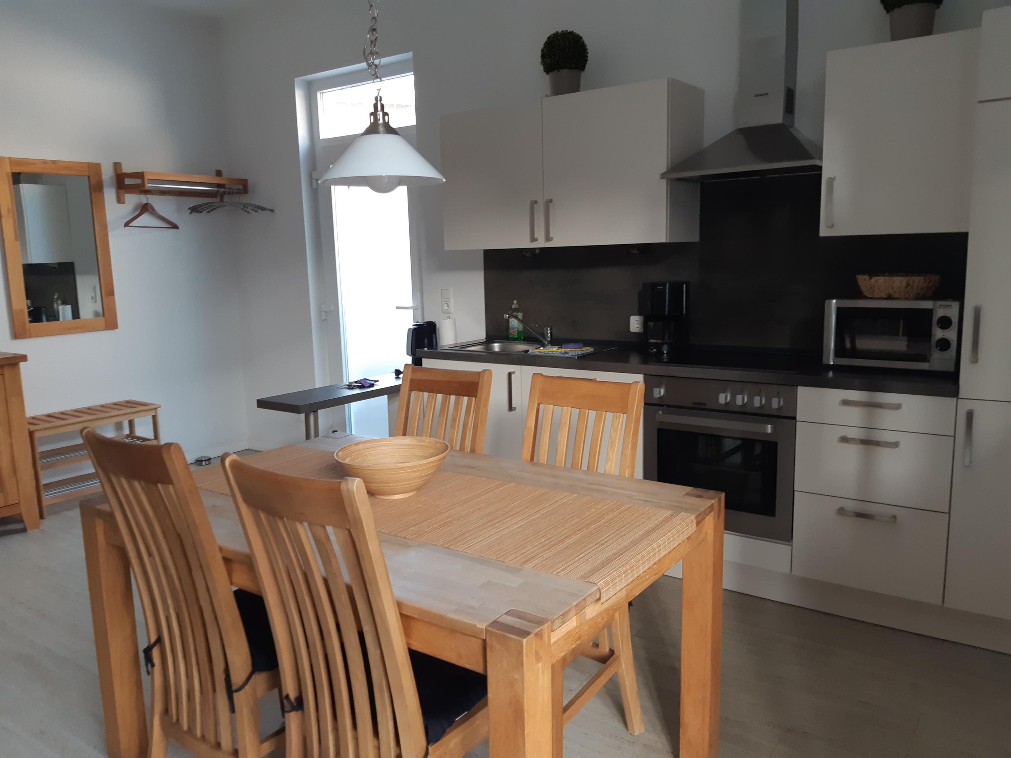 Der Wohnbereich bietet Ihnen ein gemütliches Sofa, Smart-TV, einen DVD-Player und ein digitales Radio. Zudem ist Internet über WLAN kostenfrei vorhanden. Die offene Küche ist modern ausgestattet.
