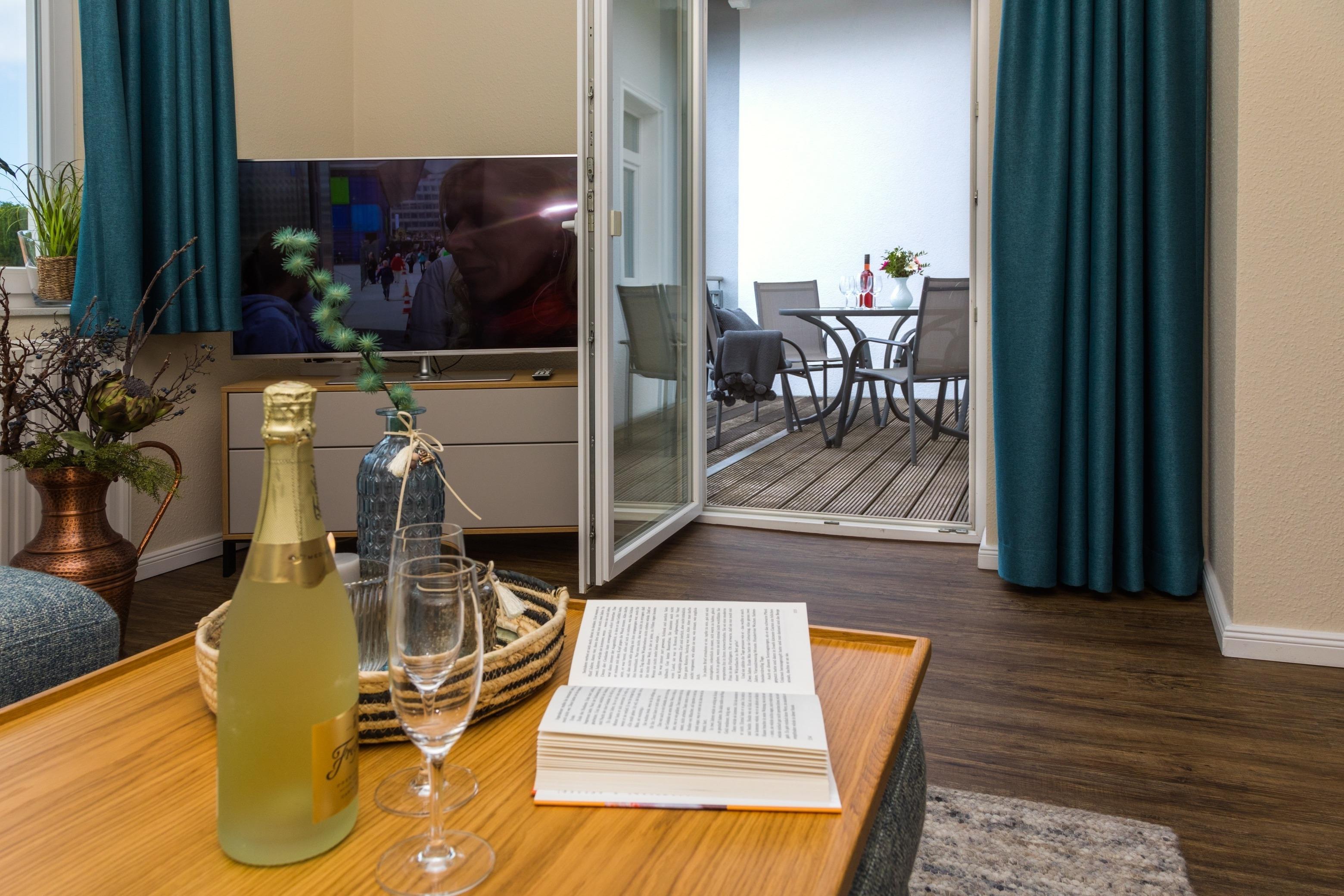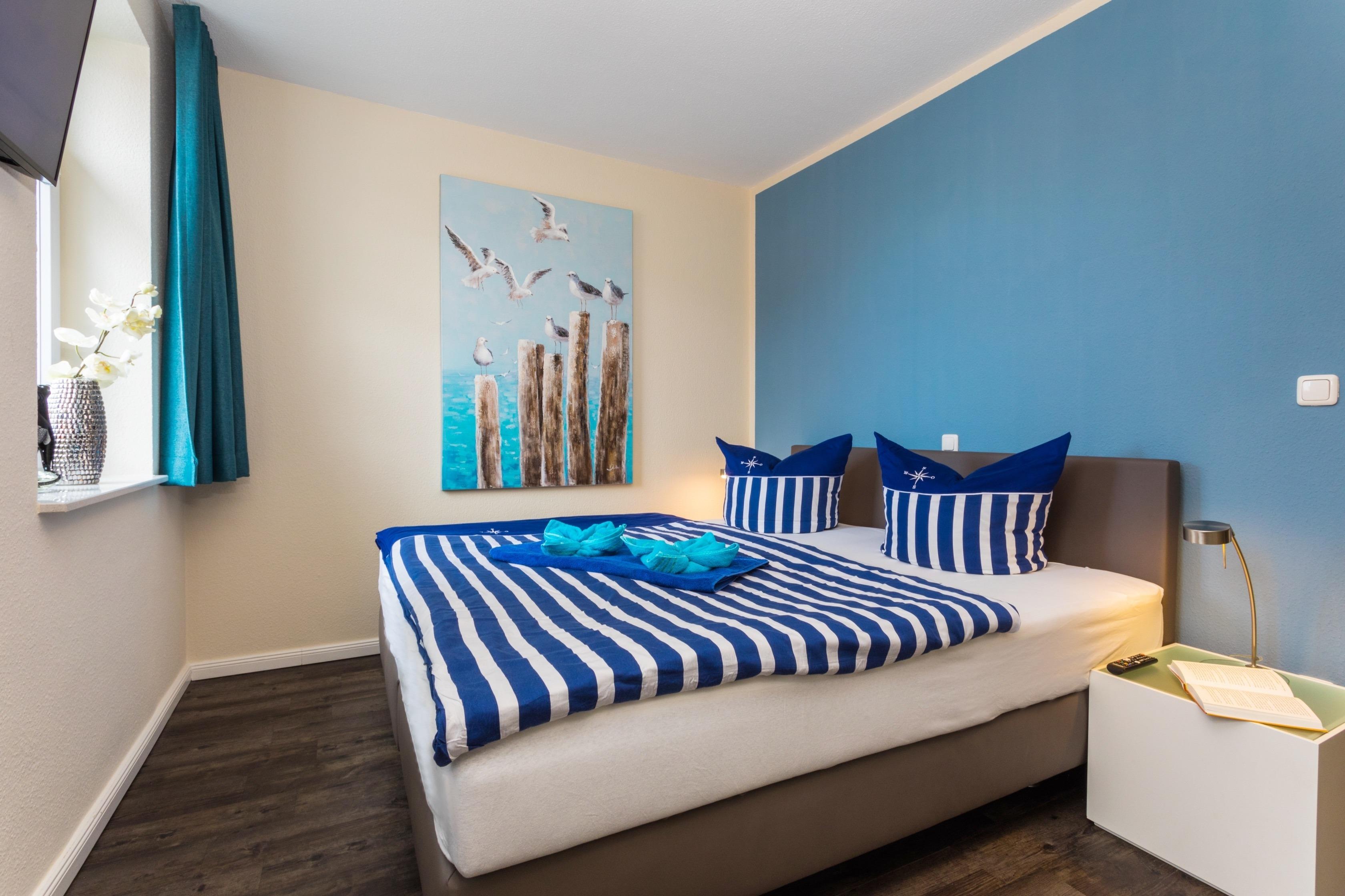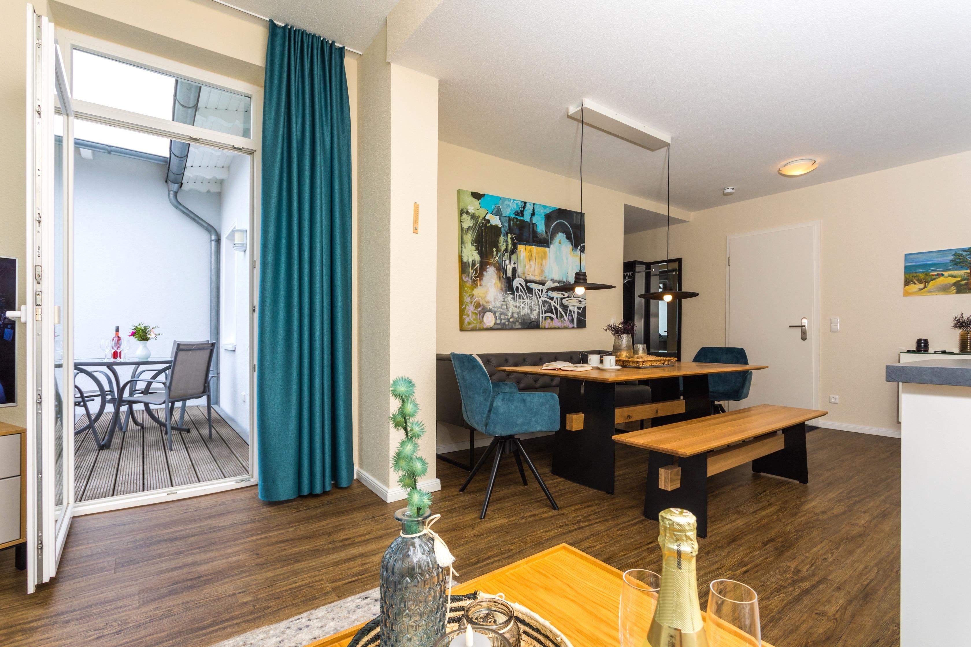 Die 63 m ² große und helle Ferienwohnung 12 befindet sich im Obergeschoss in der Villa Marin. Sie bietet mit ihren drei Zimmern ausreichend Platz für bis zu 4 Personen.