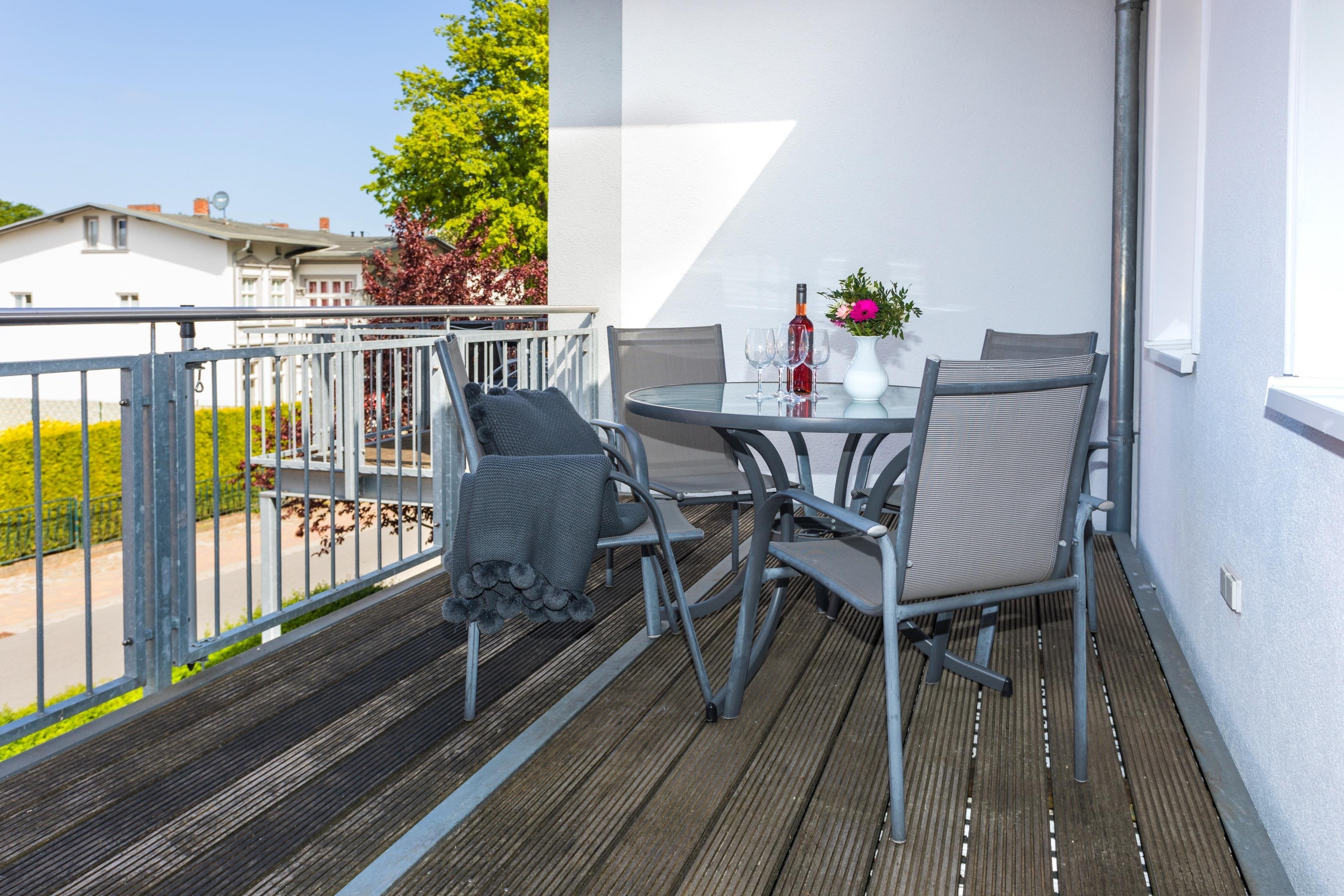 Lassen Sie den Abend nach einem erlebnisreichen Tag gemütlich auf dem Balkon (Südwestseite) ausklingen.