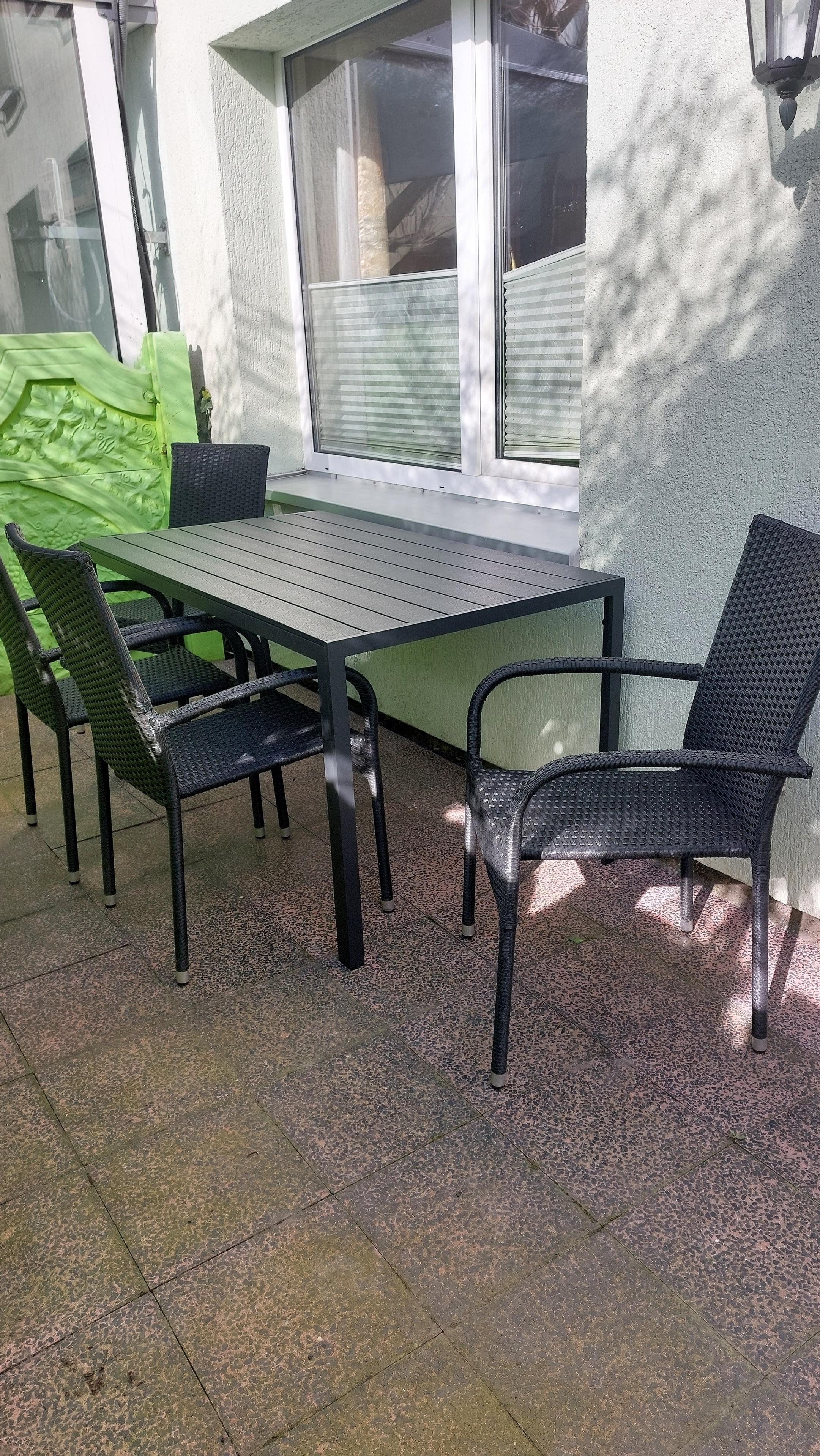 Zur Wohnung gehört eine eingezäunte Terrasse, die vom Wohnzimmer aus begehbar ist.
