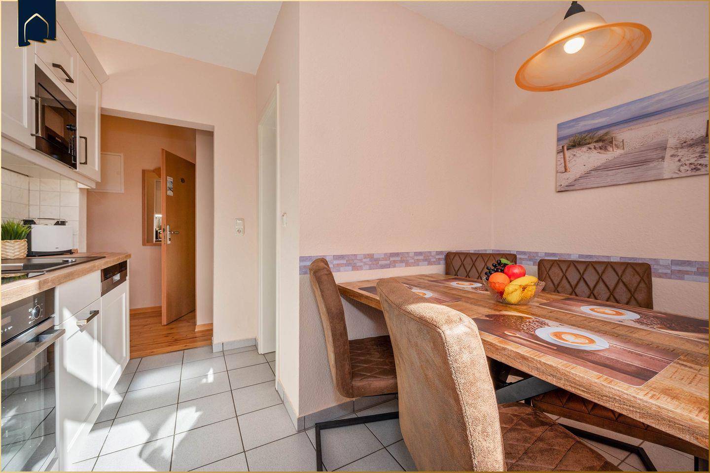 Die voll ausgestattete Küche mit Backofen, Herd, Kühlschrank, Gefrierfach, Mikrowelle, Kaffeemaschine, Toaster, Wasserkocher und sogar einem Eierkocher lässt keine Wünsche offen. Am Esstisch im lichtdurchfluteten Essbereich genießen Sie gemeinsame Mahlzeiten. Für entspannte Stunden im Freien stehen ein gepflegter Garten mit Sonnenliegen, Grillplatz und Sitzgelegenheit zur Verfügung – ideal für lange Sommerabende. Der eigene Parkplatz sowie eine Fahrradabstellmöglichkeit bieten zusätzlichen Komfort.