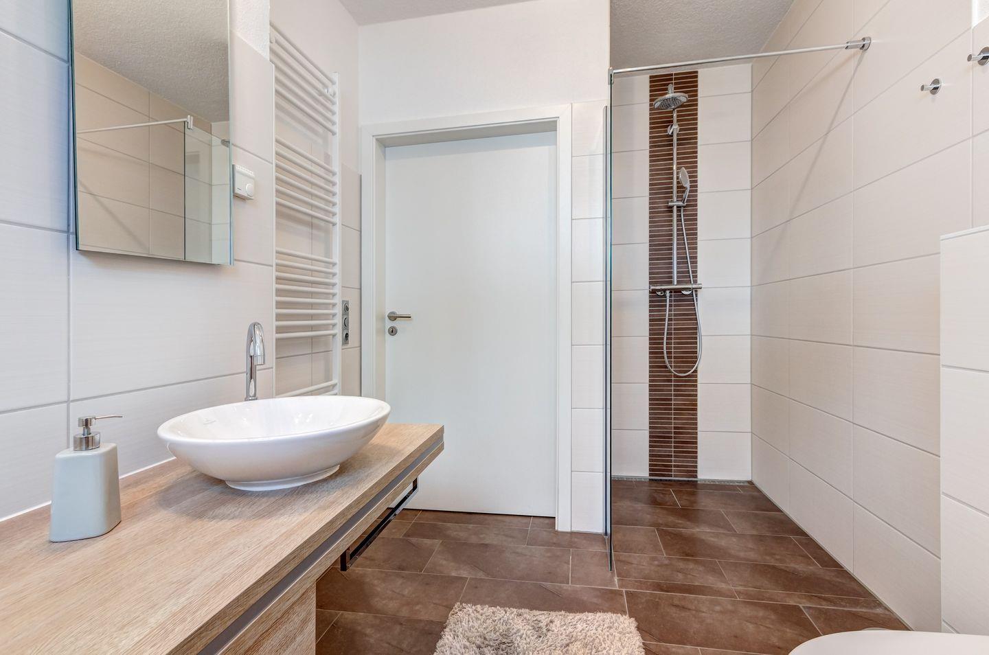 Eine Fußbodenheizung sorgt für angenehme Wärme, während eine moderne Lüftungsanlage ein frisches Raumklima garantiert.