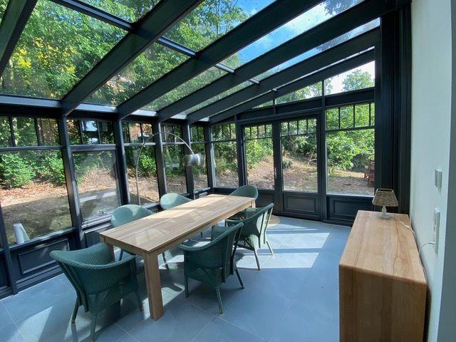 Ein Highlight der Villa ist der an das Wohnzimmer angrenzende verglaste Wintergarten mit offener Küche und großem Holzesstisch und Fußbodenheizung. Vom Wintergarten aus betreten Sie eine Holzterrasse mit einem ebenfalls großen Esstisch. Herrlichen Abenden steht nichts im Wege, auch wenn es im Frühjahr oder im Herbst einmal etwas kühler wird.