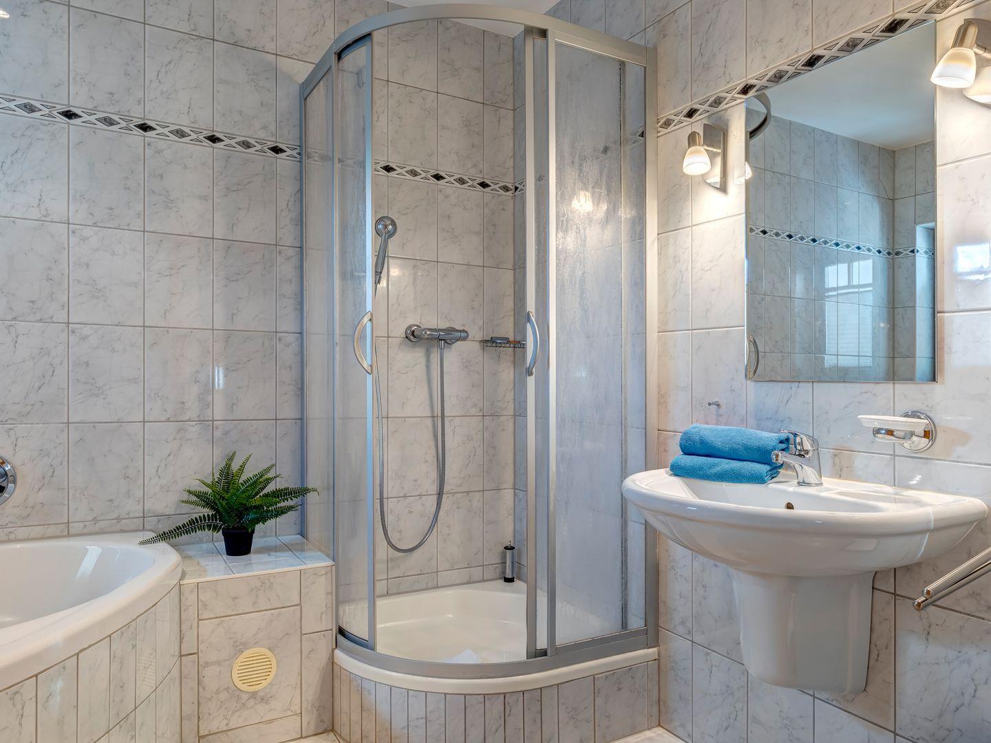 Für entspannte Auszeiten bietet das Badezimmer ein besonderes Highlight: Eine Badewanne mit Whirlpoolfunktion – perfekt, um den Alltag hinter sich zu lassen und pure Ruhe zu genießen.