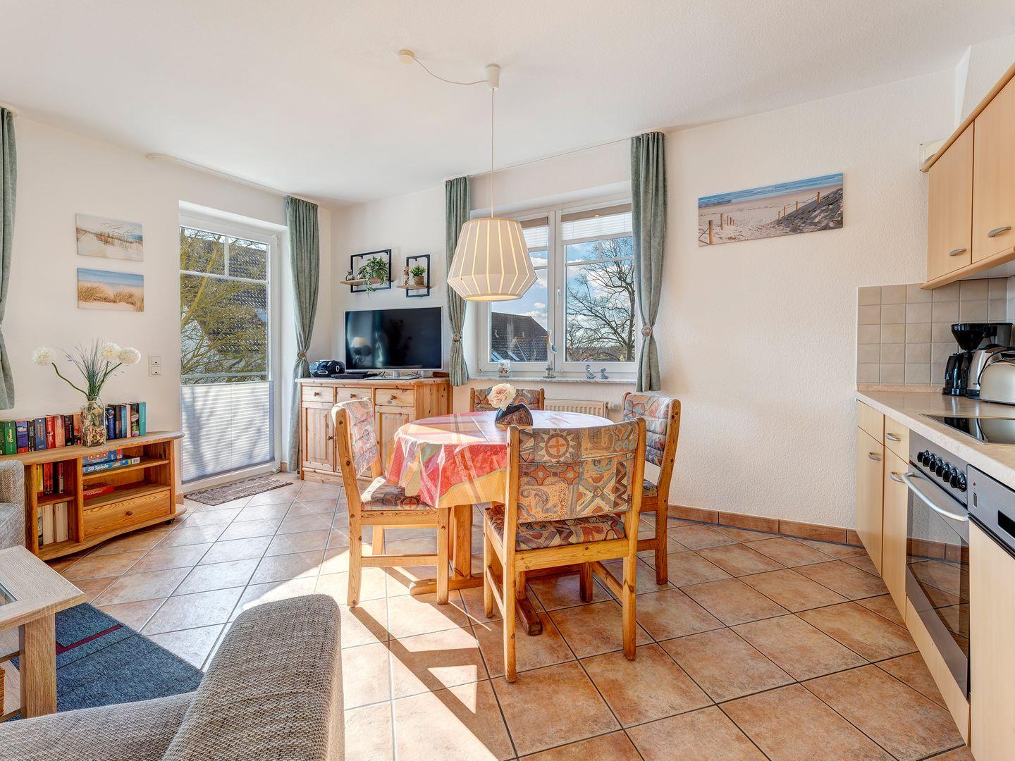 Die Ferienwohnung 24 "S(tr)and-im-Schuh" im Ostseequartett verfügt über zwei Zimmer: ein gemütliches Schlafzimmer mit Doppelbett und ein großzügiges Wohn-/Esszimmer mit integrierter, voll ausgestatteter Küchenzeile. Die moderne Küche bietet alles, was Sie für die Zubereitung Ihrer Lieblingsgerichte benötigen.
