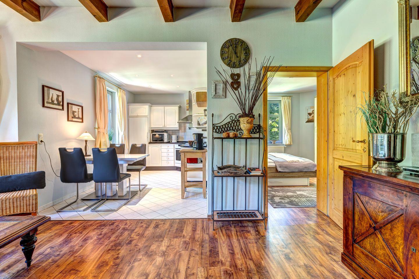 Herzlich Willkommen in der Ferienwohnung "Turmfalke" im Haus Seeadler! Diese gemütliche Unterkunft mit 65 m² bietet Platz für bis zu vier Personen und ist ideal für Familien. Sie finden hier ein Schlafzimmer, eine voll ausgestattete Küche und ein ansprechendes Wohnzimmer mit Essbereich.