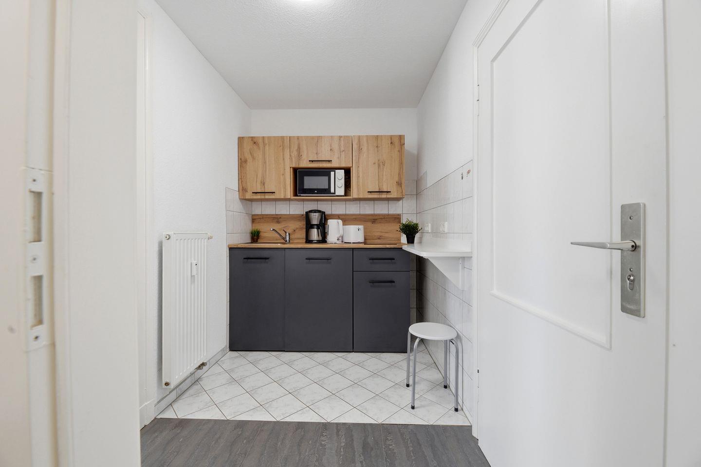 Die modern eingerichtete Küche und das Badezimmer mit Dusche und WC runden das Gesamtbild ab.