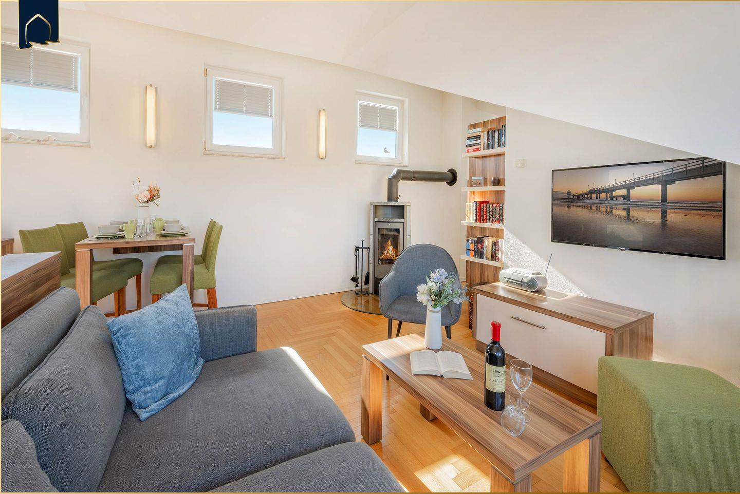 Das Haus Ostseekristall App. Saphir in Zinnowitz bietet auf 55 m² modernen Komfort für bis zu vier Personen. Die Unterkunft verfügt über einen Balkon, einen offenen Wohnbereich mit Kaminofen, Fußbodenheizung, eine voll ausgestattete Küche, WLAN und einen Privatparkplatz. Haustiere sind willkommen. Ein Supermarkt, Restaurants, Strand und zahlreiche Freizeitmöglichkeiten befinden sich in der Nähe.