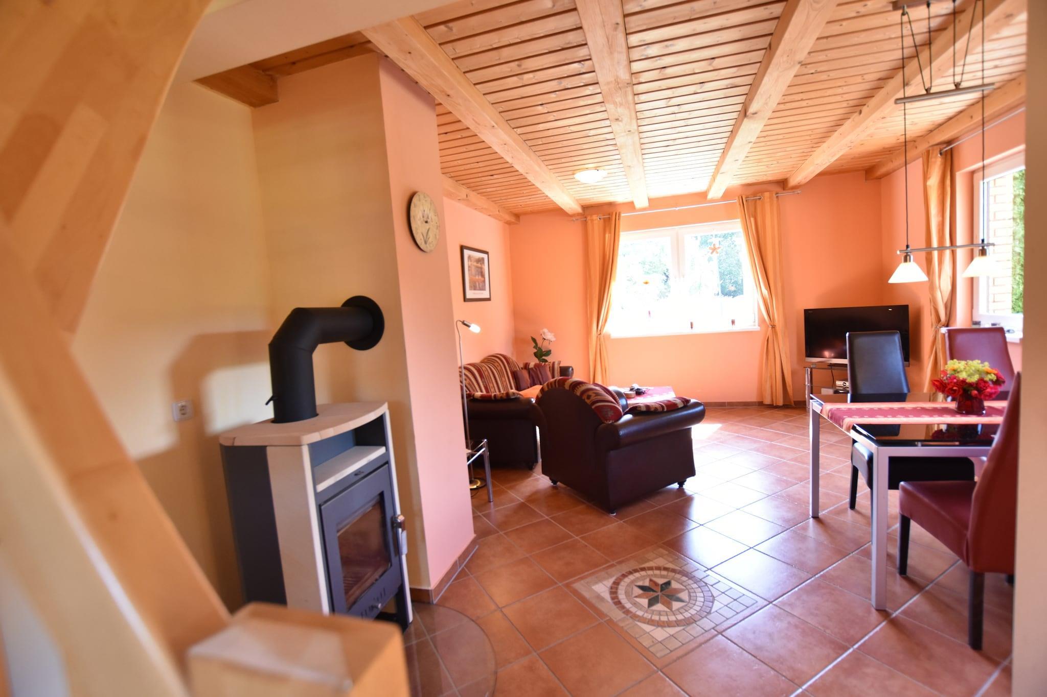 This cozy 3-room holiday apartment in Zweedorf offers a peaceful escape just 5 minutes from the Baltic Sea beach in Rerik. Spread over 2 floors, the apartment comfortably accommodates up to 5 guests. On the ground floor, you'll find a spacious living room with a wood-burning stove, an open, fully equipped kitchen, and a bathroom with shower and toilet. Upstairs are two bedrooms, one with a double bed, the other with two single beds and a double bed. The natural garden surrounding the property features a wooden pavilion and a furnished terrace with a barbecue—perfect for relaxing or enjoying meals outdoors. The location is great for exploring by car or bike. Nearby, the Baltic Sea resorts of Rerik (4 km) and Kühlungsborn (9 km) offer sandy beaches, piers, promenades, and restaurants. Day trips to Bastorf lighthouse, the "Wonnemar" wellness pool in Wismar, or the Hanseatic towns of Wismar and Rostock (both 30 km) are ideal for variety. Ferries from Rostock even allow for day trips to Denmark.