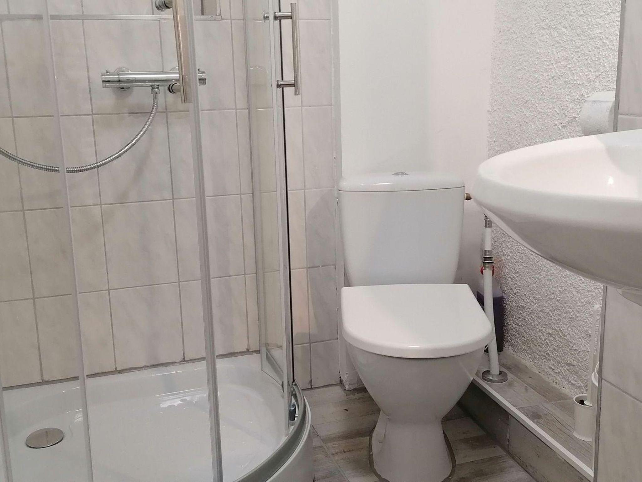 Bis zu 14 Personen finden an der großen Tischgruppe Platz. Der Pelletofen im Gemeinschaftsraum sorgt für angenehme Wärme – sowohl zeit- als auch temperaturgesteuert. Selbstverständlich stehen zusätzlich Heizkörper zur Verfügung.