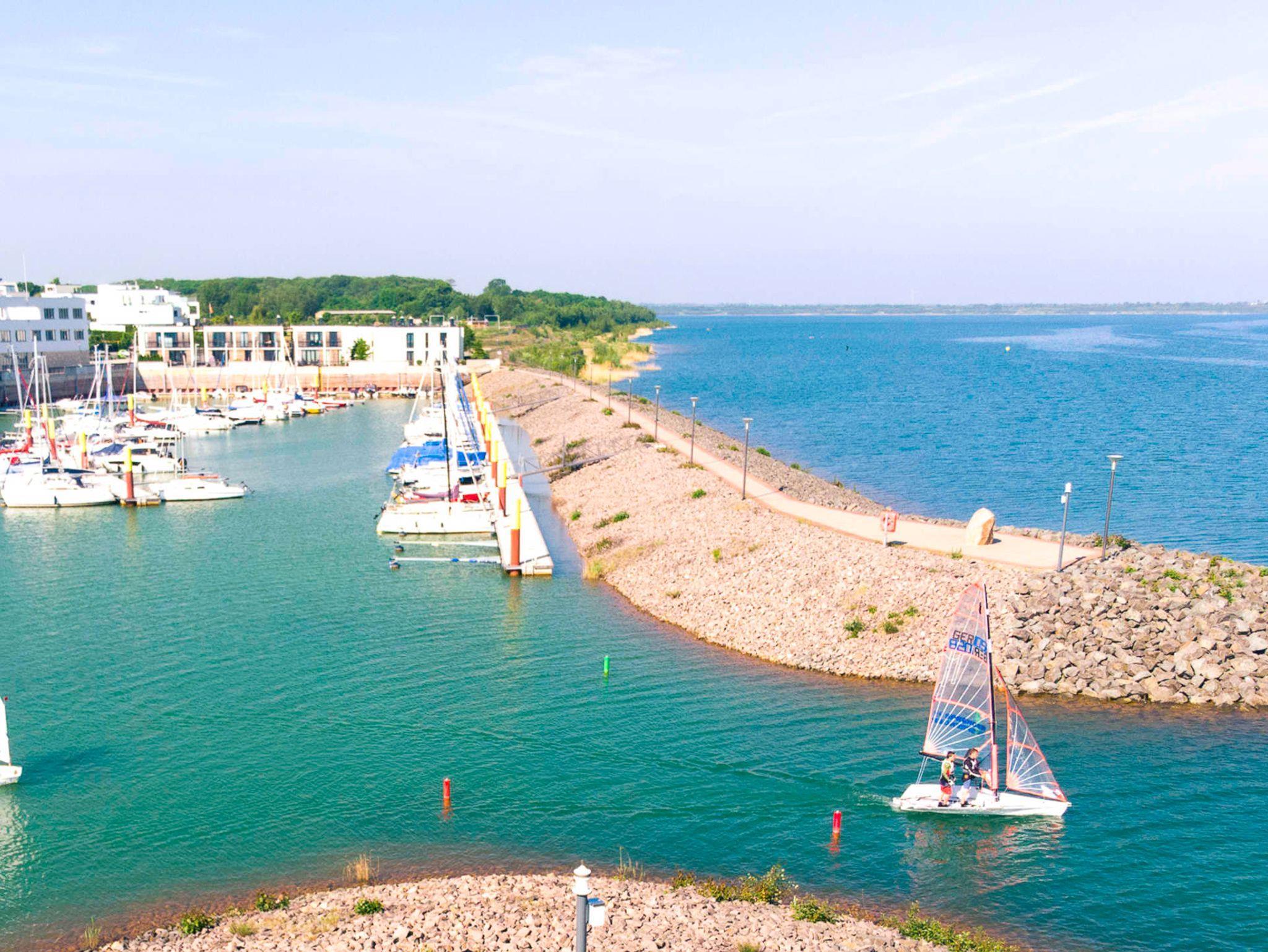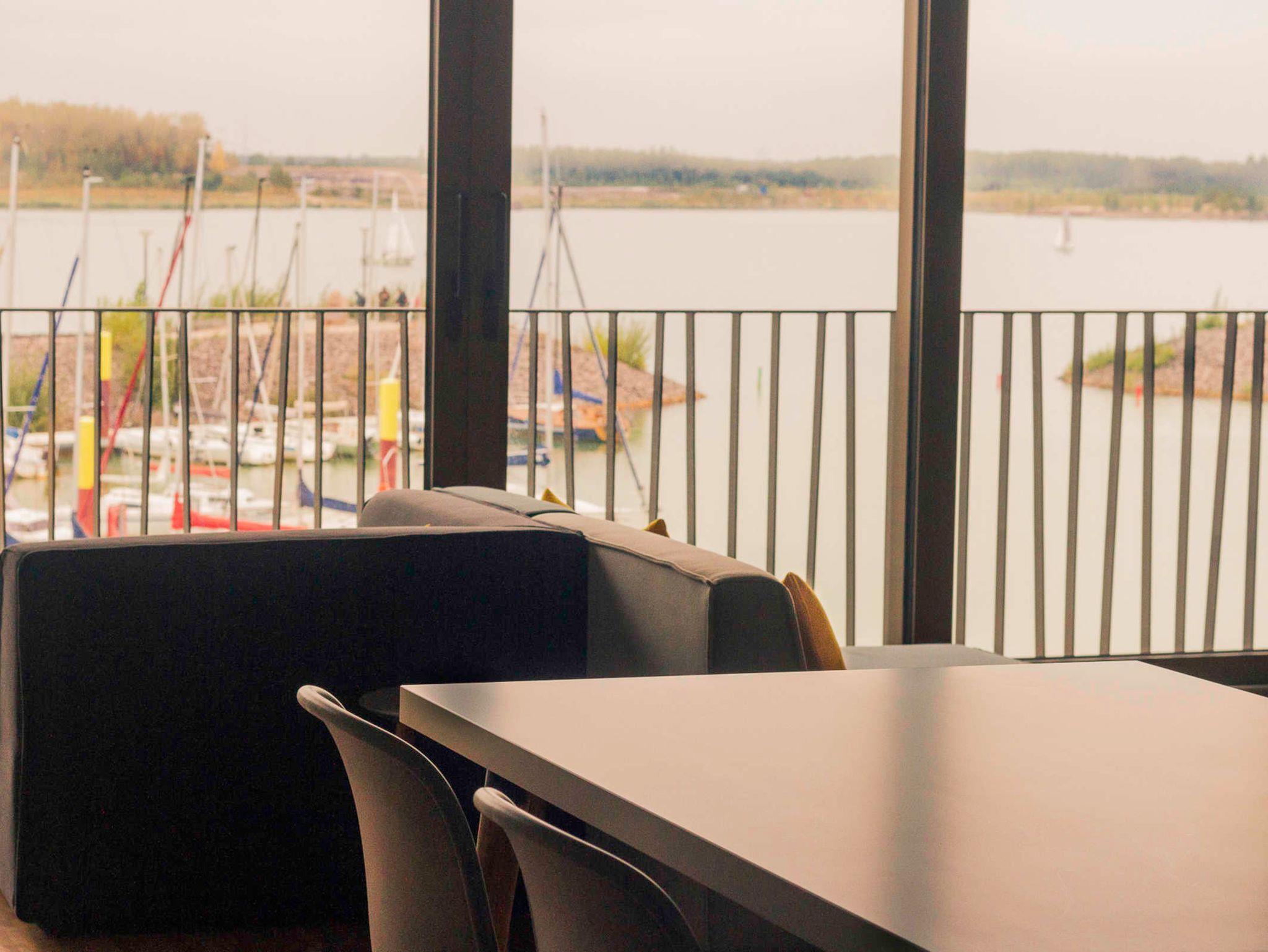 Zarte Gelbtöne unterstreichen die Großzügigkeit des lichtdurchfluteten Wohnraums. Sowohl von hier, als auch aus dem nördlichen der beiden Schlafzimmer, öffnen sich herrliche Seepanoramen und der Zugang zum Hafenbalkon. Die Großzügigen bieten, mit knapp 100 m², reichlich Platz für die offene Küche, zwei Schlafzimmer mit 160er Doppelbetten, Sanitärbereich mit Dusche, Abstellraum für Koffer und Co. und lassen sich – im Fall der Fälle – für zwei weitere Gäste (140er Wandklappbett) im Wohnbereich aufbetten.