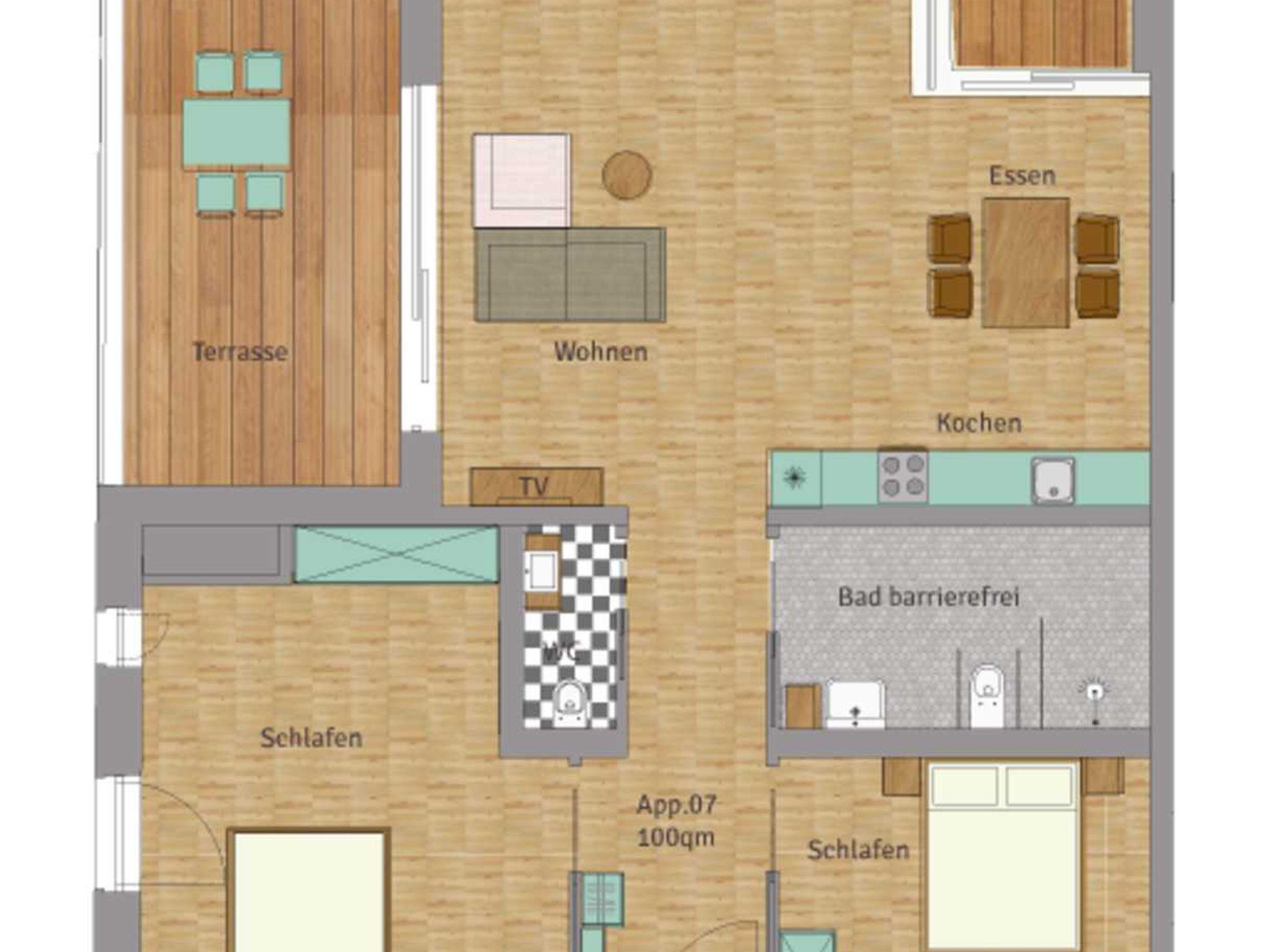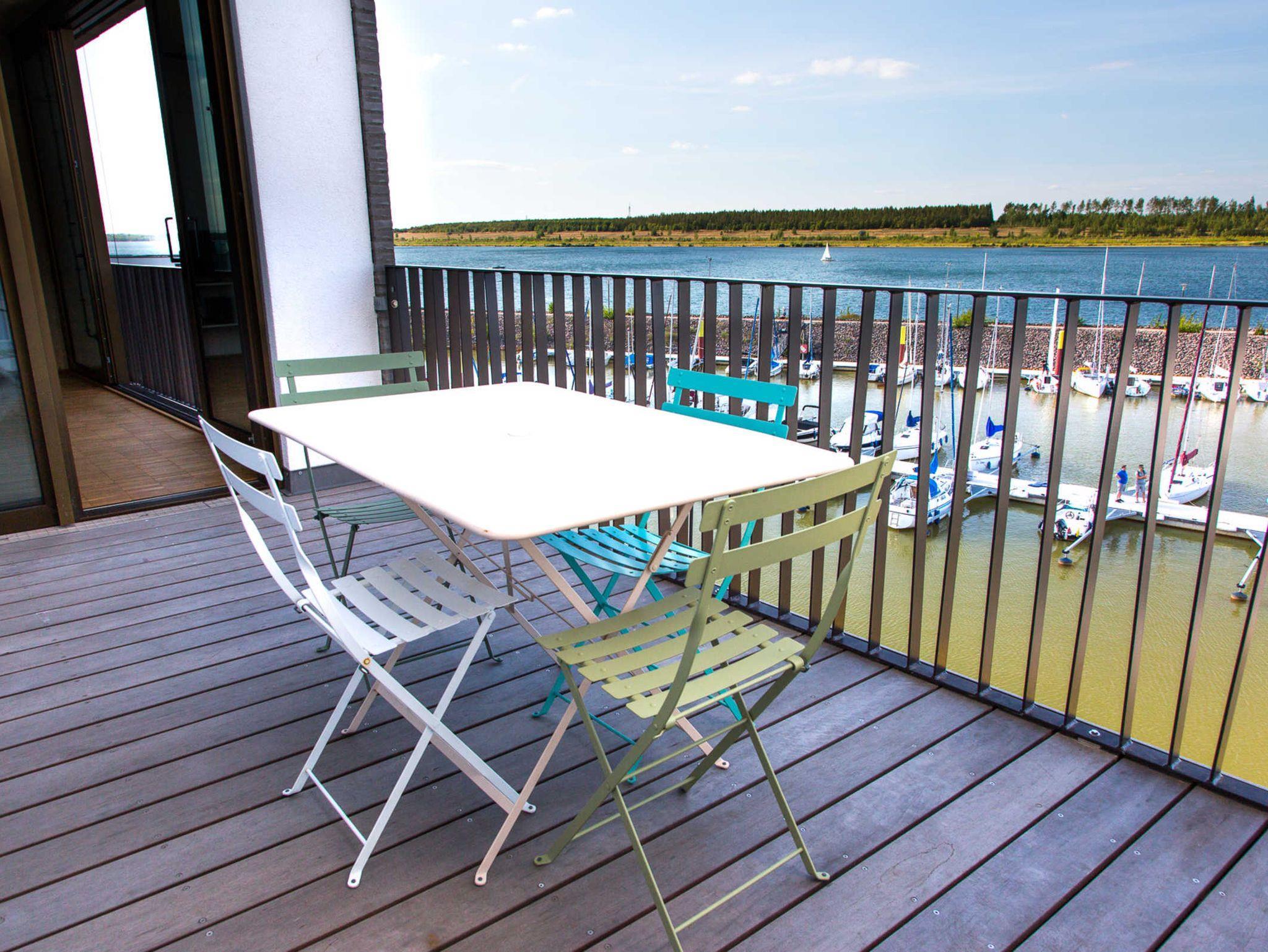 Der offene Wohnraum gibt den Blick auf den See frei und wirkt durch die dominierenden Grüntöne freundlich und beruhigend. Noch imposanter ist der Blick natürlich vom Westbalkon – mit Glück auch in einen herrlichen Sonnenuntergang. Zwei Schlafzimmer mit 160er Doppelbetten, barrierefrei gestalteter Sanitärbereich mit Dusche und WC, ein separates WC sowie Schalter und Steckdosen in Komforthöhe, das sind unsere Komfortablen. Die Komfortable 07 verfügt darüber hinaus über einen zweiten Balkon.