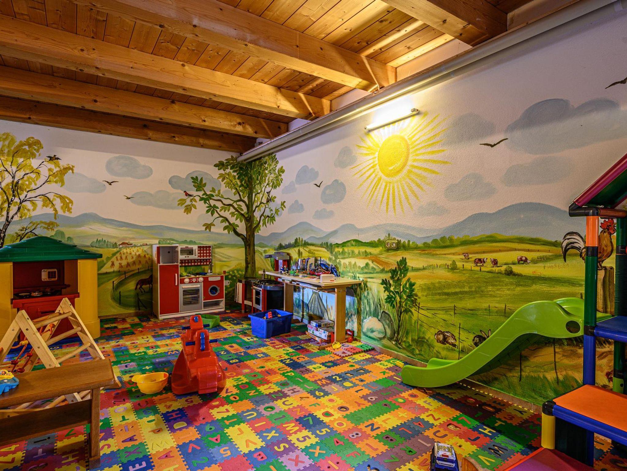 Sie wohnen auf einem Biobauernhof mit Kühen und Kälbern.Reiterferien für die ganze Familie. In unserer Reithalle bieten wir Reitunterricht für groß oder klein. Für die Kleinsten finden sie eine Heuburg Spielscheune Spielplatz und Spielzimmer mit einem großem Kettcar- Fuhrpark. Für die Großen eine 100qm große Saunalandschaft mit zwei Saunen, Infrarotkabine, Wintergarten und Whirlpool. In den urgemütlichen vom Schreiner gefertigten Ferienwohnungen werden Sie sich bestimmt wohl fühlen.
