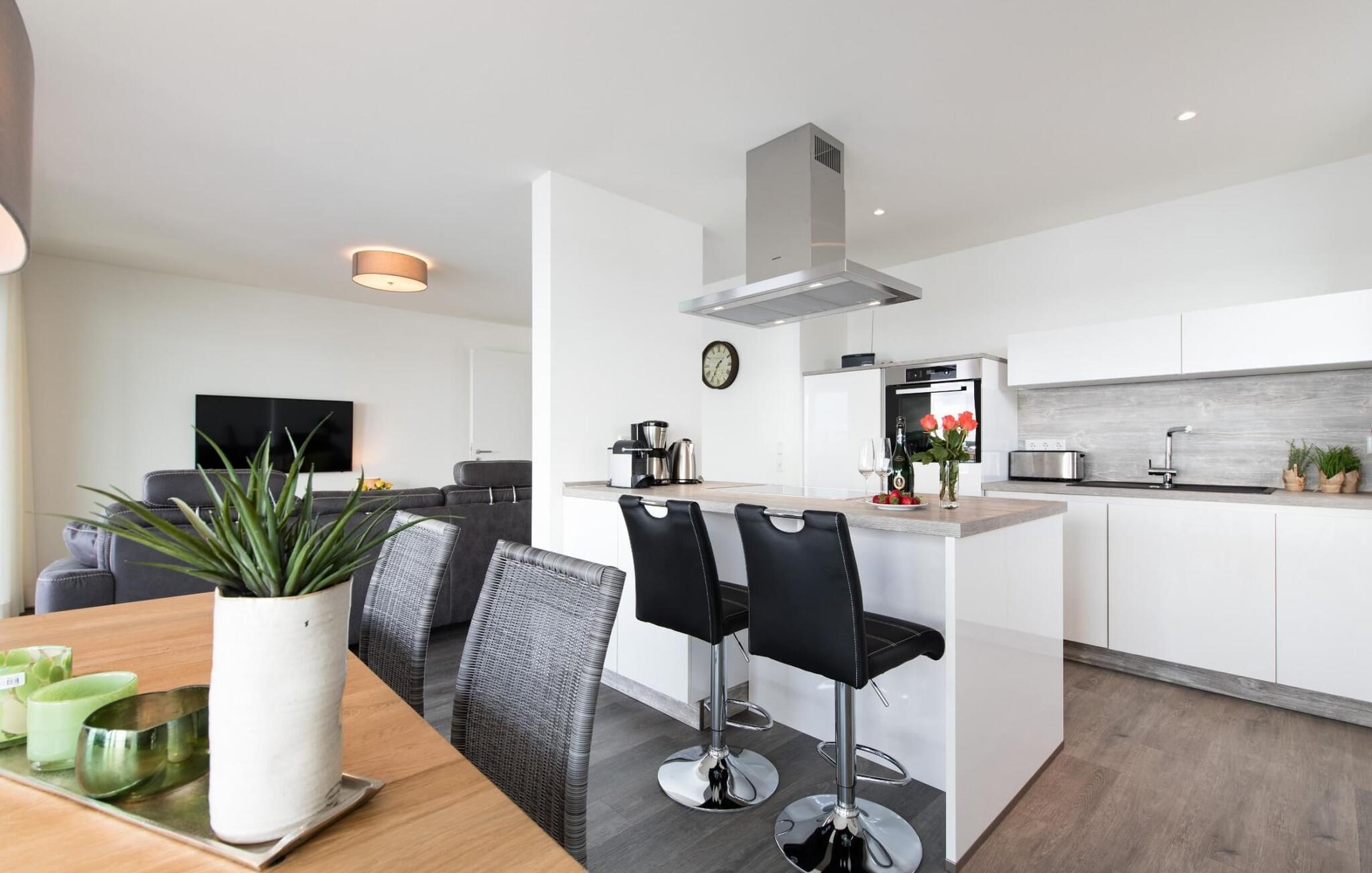 Rundum ausgestattet ist die Wohnküche, in der sich köstliche Urlaubsmahlzeiten zubereiten lassen.
