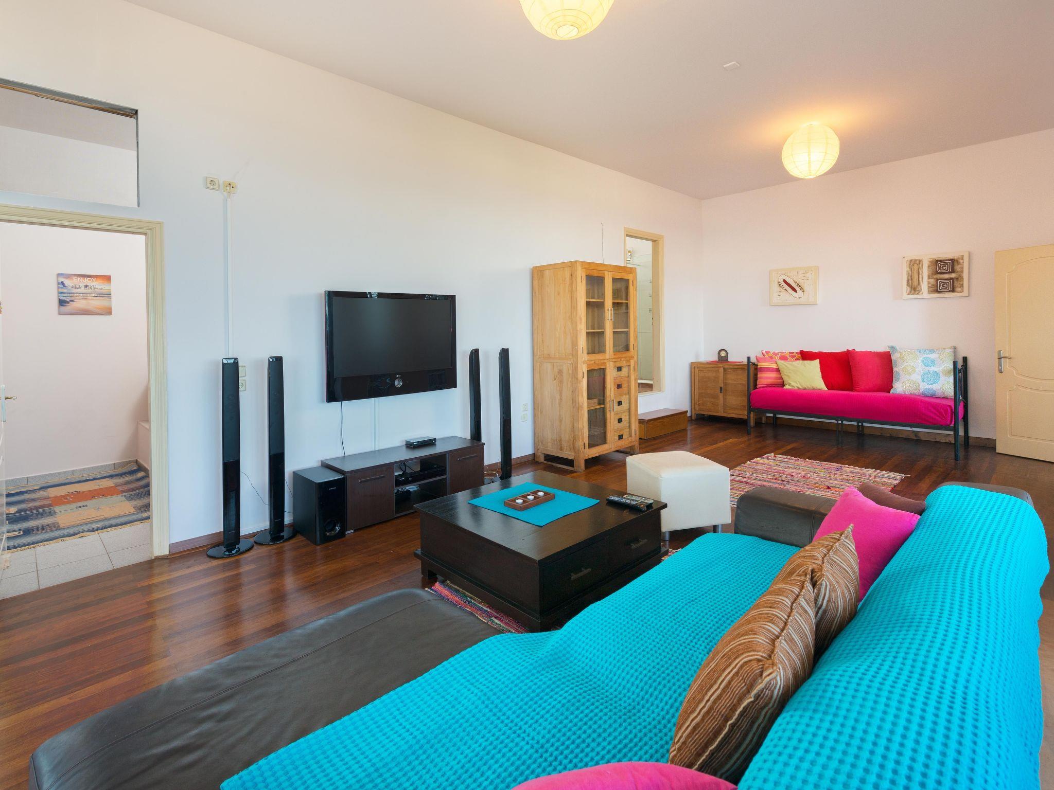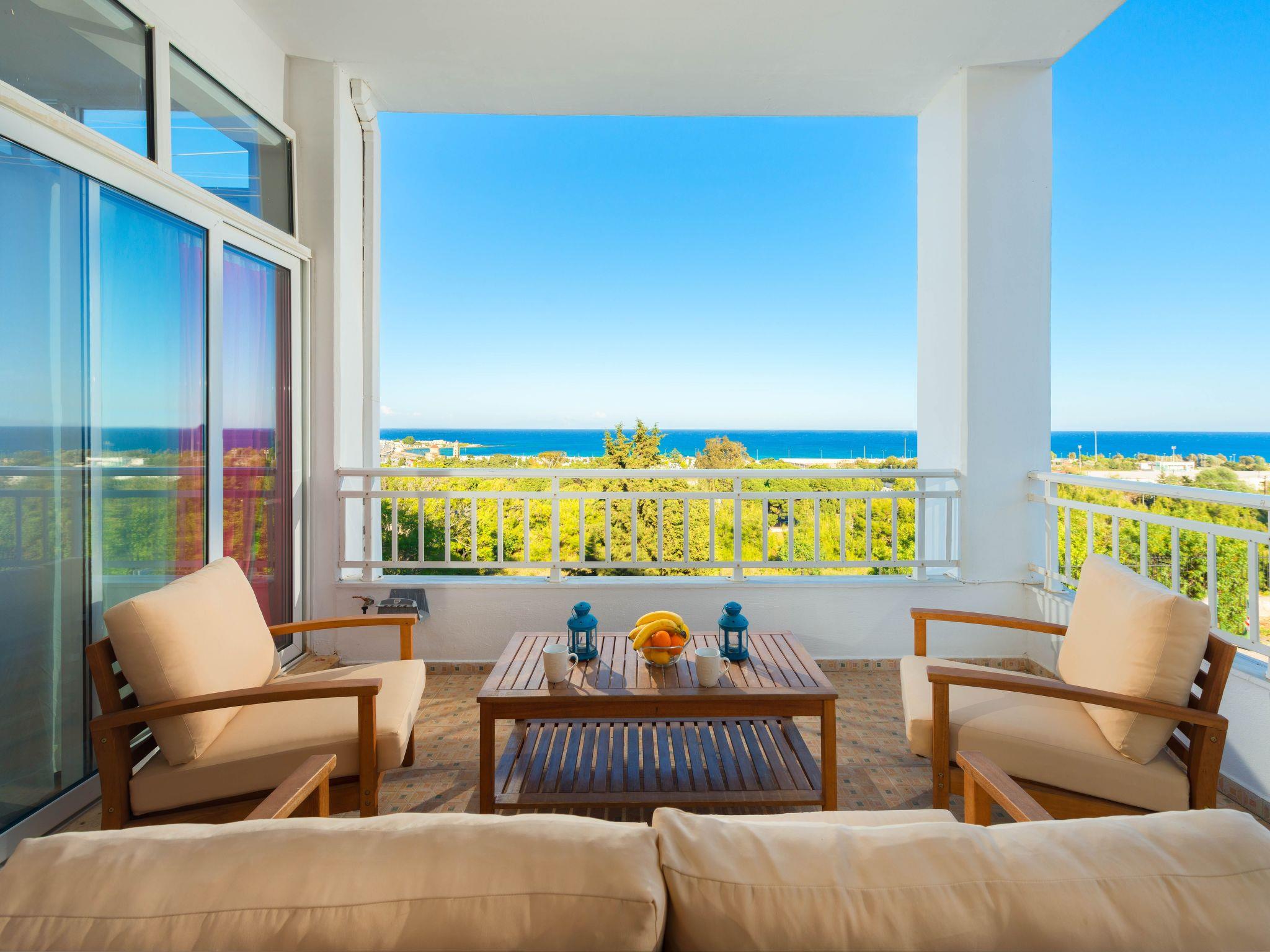 The apartment have an amazing view and is near to everything you need. Nice Greek Restaurants, super markets and shops are on a walking distance. This Spacious apartment have 3 bedrooms a big balcony and a private garden with Barbeque. Open kitchen with sea view and Hamam for 6 people in the Bathroom. 3 bedrooms, a big open kitchen with direct access to the Balcony. This property can accommodate up to 9 persons A big bathroom with hamam and wooden parquet floors. The apartment has an amazing sea view from all the rooms , balcony, kitchen and from the private garden. The private garden has a big BBQ, big sofa 5 persons jacuzi with wonderful sea view. The apartments have a nice location near to everything.