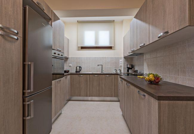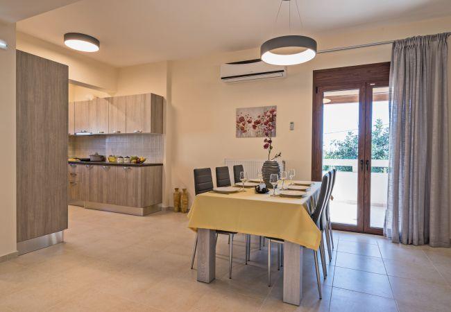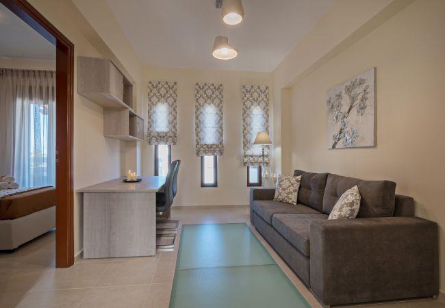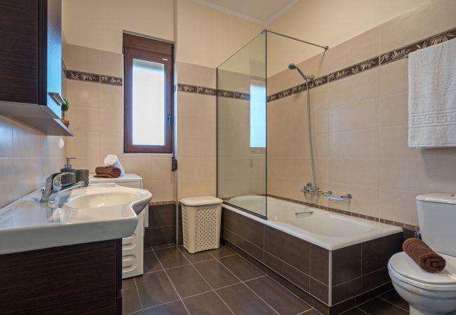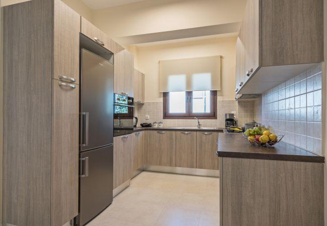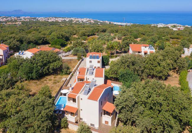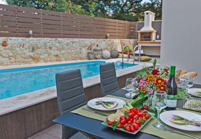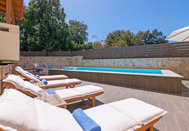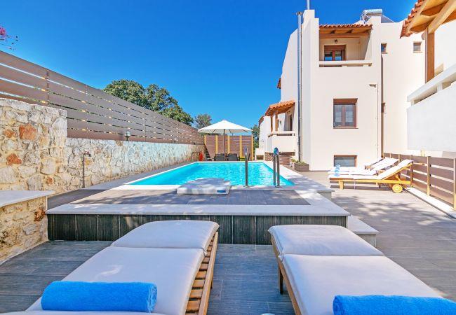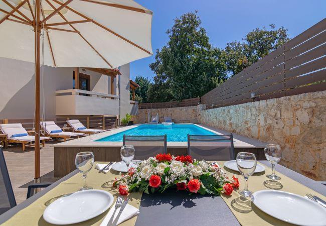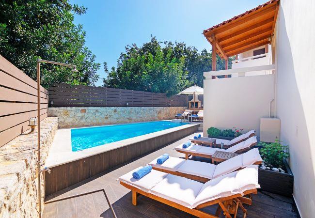 Outside, you'll find a private 20 sqm swimming pool surrounded by loungers and umbrellas, as well as a stone-built BBQ and outdoor furniture. Parking spaces are available on the property. Next door to the villa is the sister villa All season Star for larger groups. Just 200 meters from the villa, there is a traditional tavern and two mini markets. Rethymno town, with its famous Renaissance atmosphere, museums, restaurants, an organized sandy beach, and various tourist facilities, is only 3 km away.