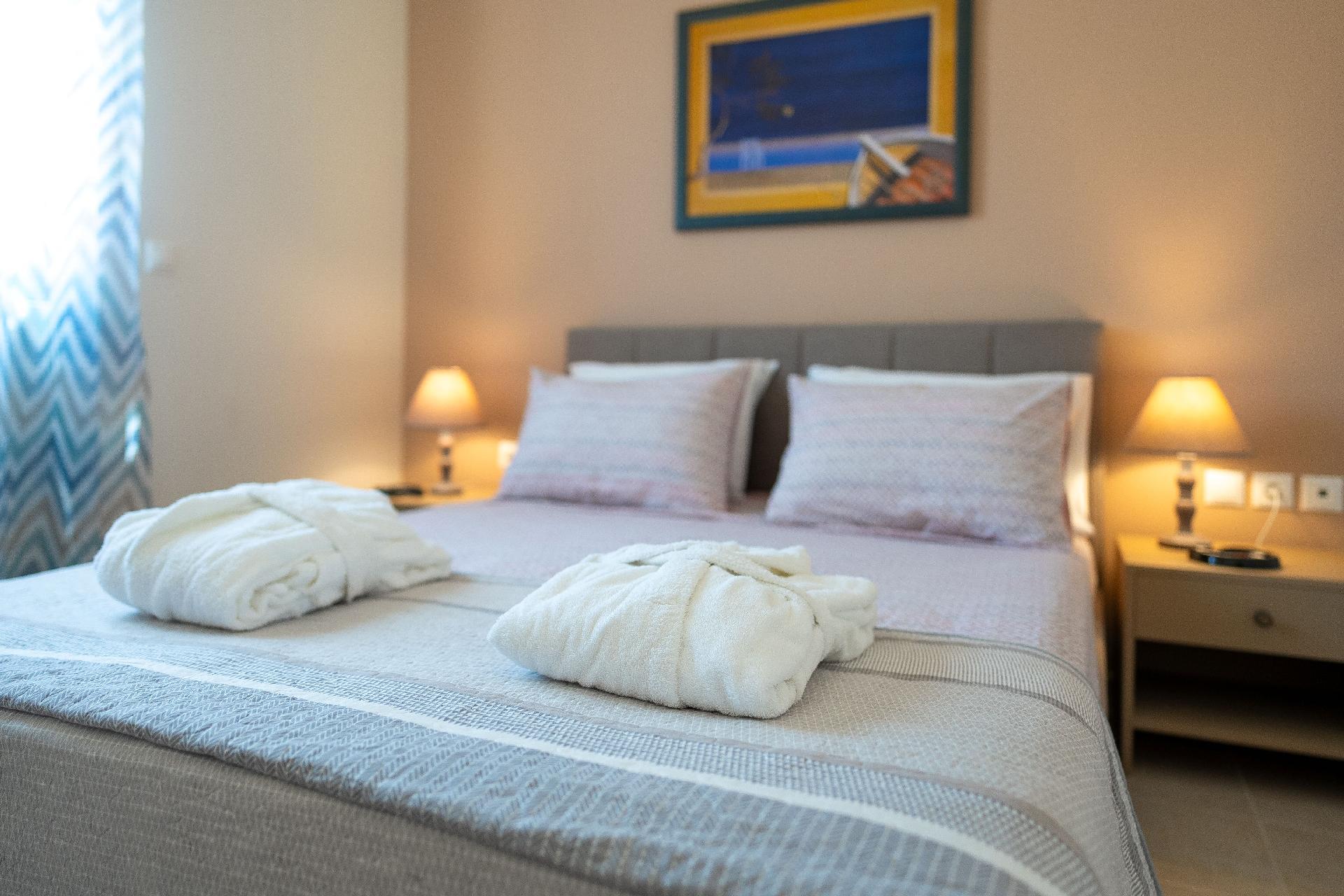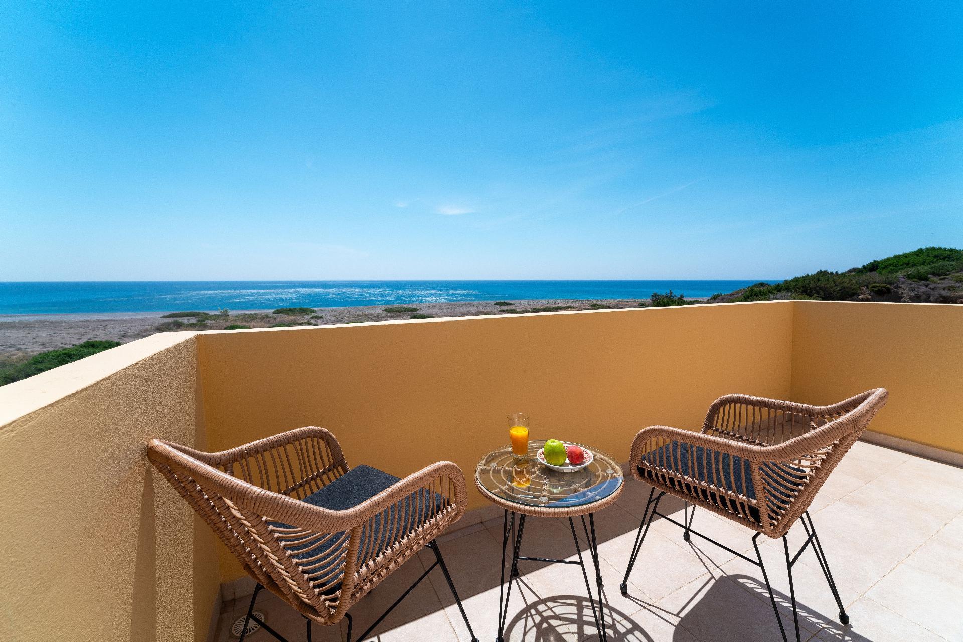 Step outside to discover the outdoor haven that compliments each maisonette. The ground-floor terrace offers a tranquil spot for relaxation, accessorized with sunbeds, a swing chair, and a cozy outdoor sofa positioned under a pergola - creating the perfect setting for guests to marvel at the sea view. The presence of a private garden adds to the allure, providing a verdant space for sole use where one can bask in the bliss of nature's tranquility. Each maisonette also boasts a balcony on the first floor, offering an intimate space to witness the breathtaking sunrise. The added convenience of a parking space and the charm of small rocky gardens at the house's entry embody a welcoming atmosphere for all guests, including those with large dogs.