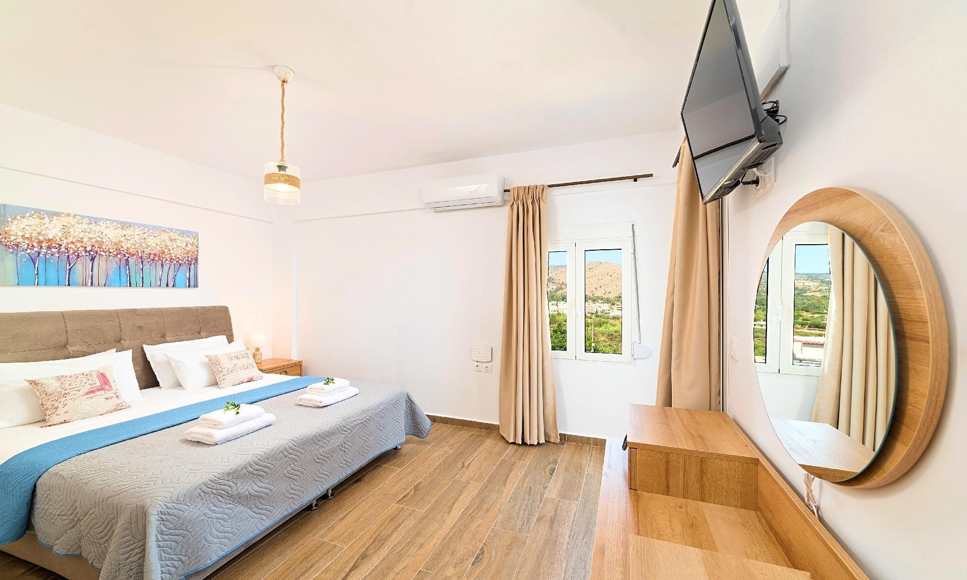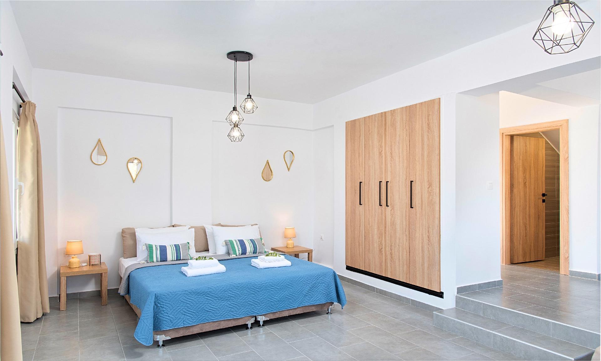 Discover the enchanting Georgioupolis Blue Villa, a serene retreat nestled in the heart of Georgioupolis, Crete, perfect for large families or a gathering of friends seeking a blend of comfort and privacy akin to their own home. This detached house, conveniently located just a 10-minute walk from the famous golden sand beach of Georgioupolis and close to a picturesque lake, the sea, and vibrant water sports activities, promises an unforgettable getaway for up to 8 guests. With its thoughtfully designed spaces both indoors and outdoors, this villa ensures a stay filled with relaxation and leisure.