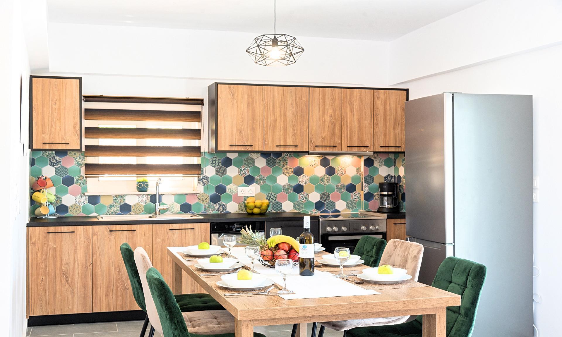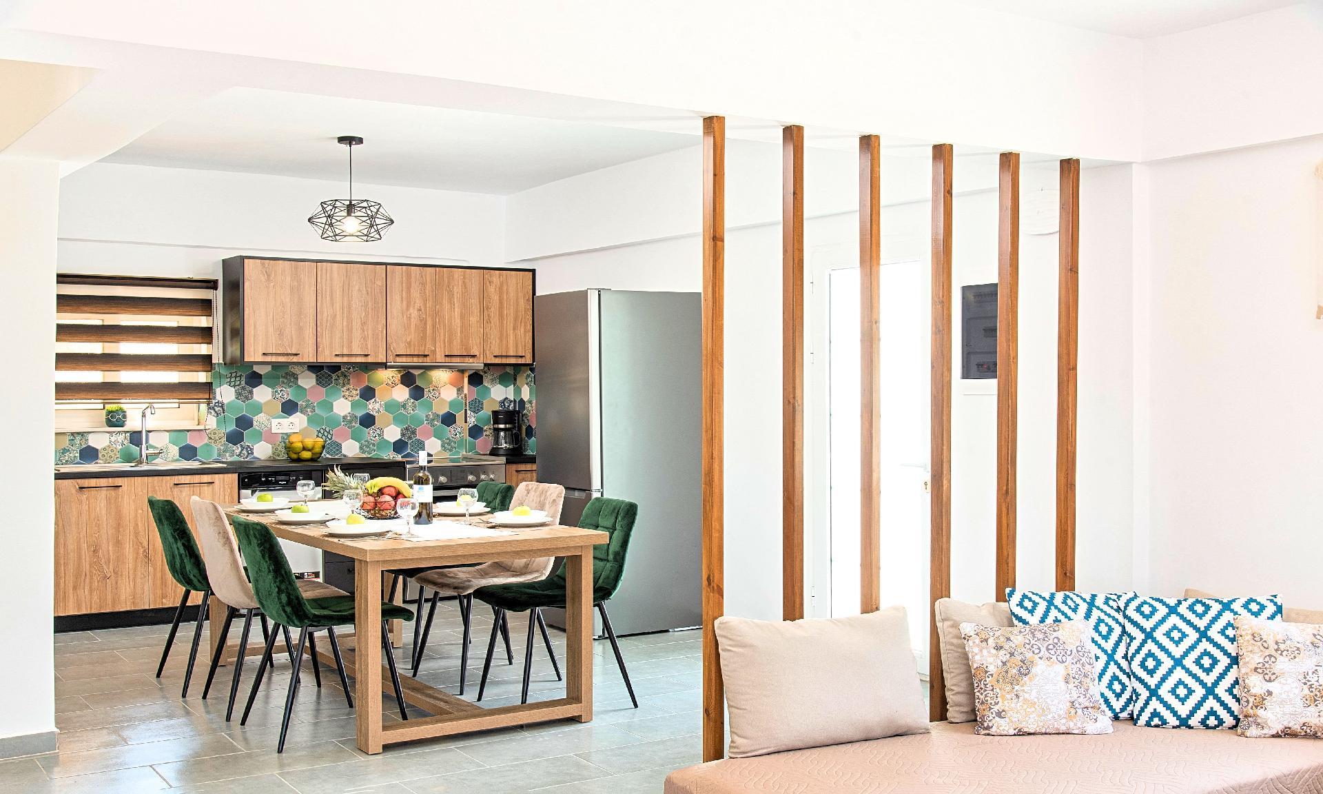 Inside, the Georgioupolis Blue Villa presents a harmonious balance of convenience and comfort, equipped with air conditioning throughout to ensure a pleasant environment on those warm Greek days. For those practical needs, the villa is outfitted with both a washing machine and a clothes dryer for exclusive use, making it easy to look after all laundry requirements without any hassle. Daily routines are further simplified with the inclusion of a dishwasher, coffee machine, and electric kettle in the fully equipped kitchen, allowing more time to enjoy the myriad of activities and experiences that Georgioupolis offers.