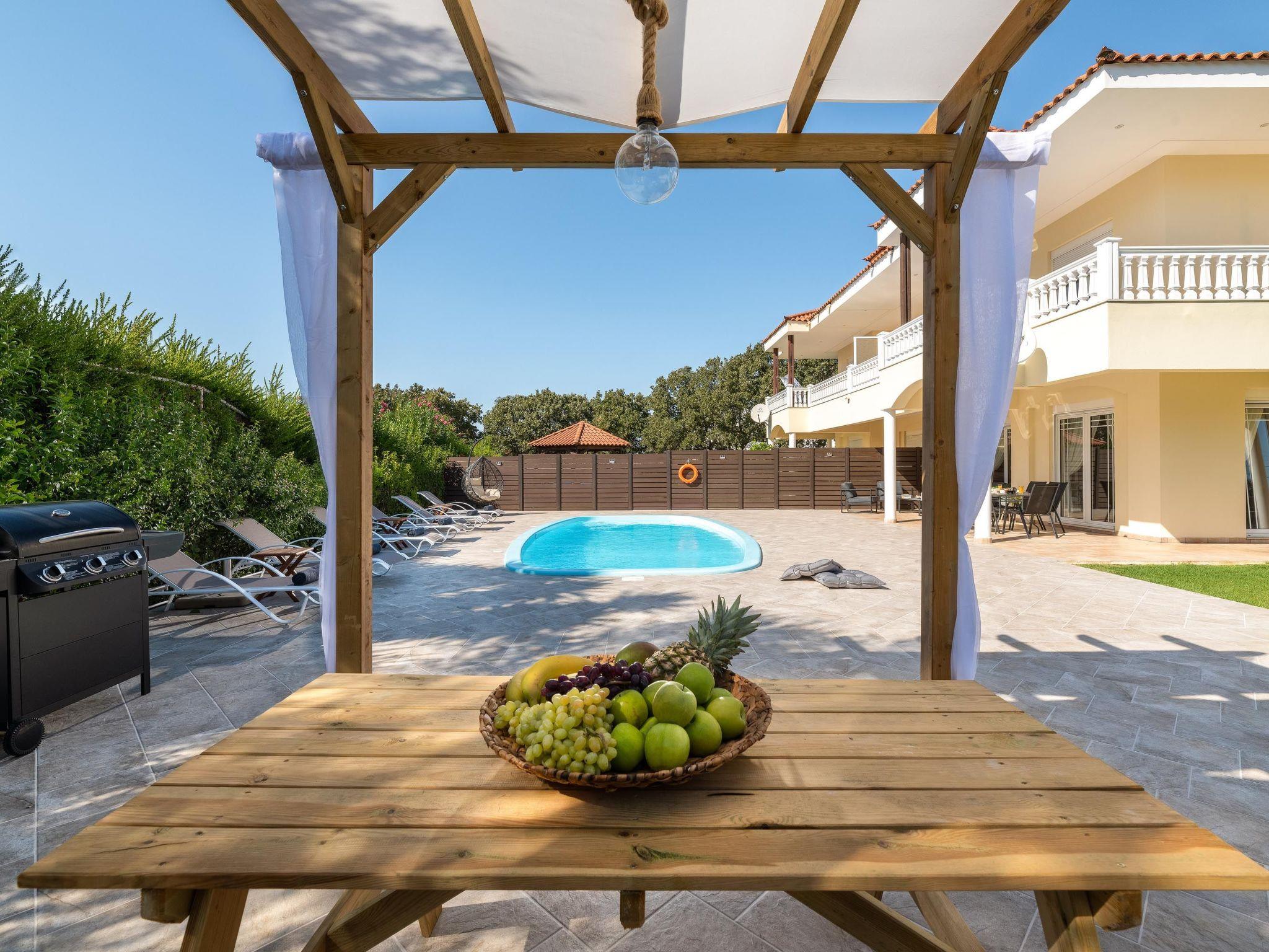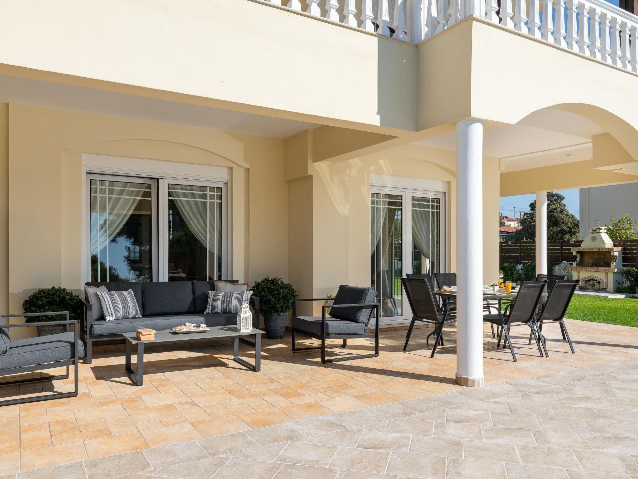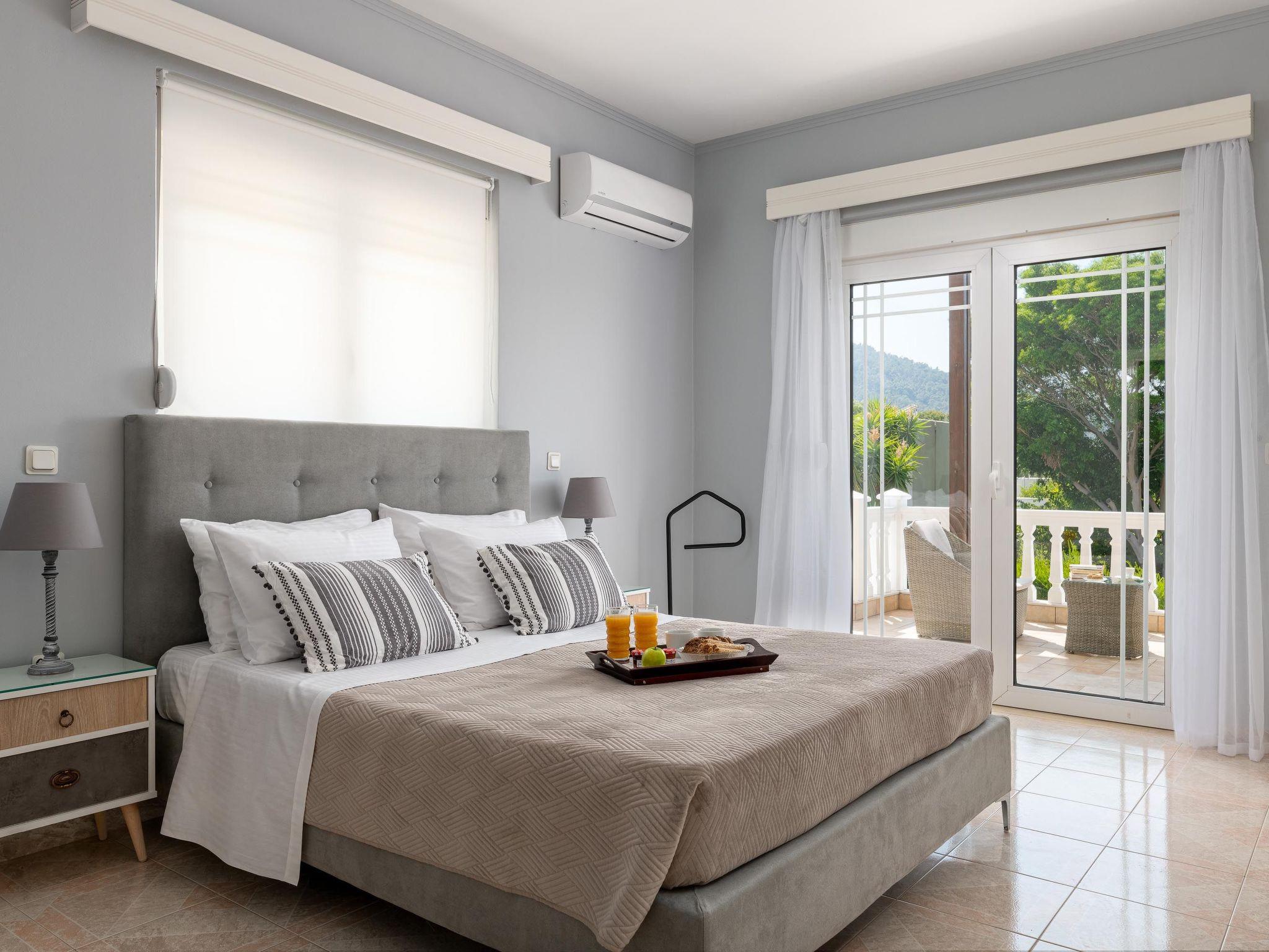 Villa Montefile is set on a beautiful side of Ialysos and offers a wonderful private swimming pool. Its great advantages are the great location, you’ll find it only a 6-minute drive from the beach as well as its contemporary interior design. The airport of Rhodes is found at a driving distance of only 15 minutes. It conveniently accommodates up to 7 guests and offers everything you might need during your holidays in Rhodes!Villa Montefile has three fully air-conditioned bedrooms, all of them with double beds and balconies. Also, it has An airconditioned bedroom with a single bed and a window. One of the double bedded bedrooms includes an ensuite bathroom with a shower and has a flat-screen TV. There are two bathrooms in total, with showers as well as a WC. All areas of the villa are fully airconditioned. Also, there’s an open-plan huge kitchen which is fully equipped and suitable for any meal preparation. In the same area, you will find the sitting area of the kitchen along with an incredibly cozy living room in bright tones. There’s a smart TV and free Wi-Fi access throughout the property. There’s an entrance that leads to two houses that belong to one property. As you face the property from the entrance, Villa Montefile is on the left.