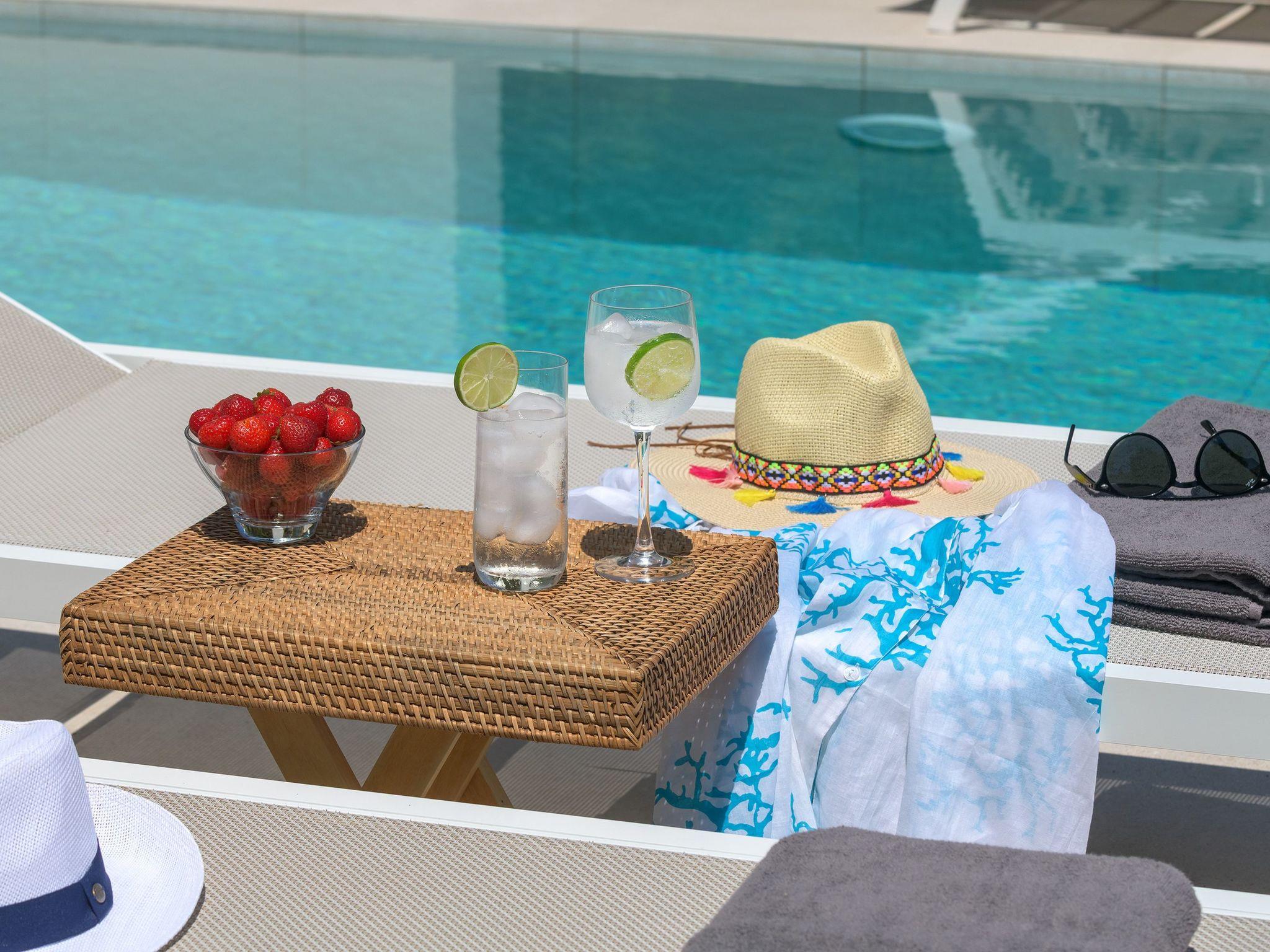 This beautifully crafted villa has 4 fully air-conditioned bedrooms, 3 double bedded rooms and 1 with twin beds. Also, there’s a comfy double sofa bed in the living room. Two of the bedrooms include ensuite bathrooms with showers. There’s, another bathroom with a bathtub as well as a wc, all of great utility and comfort. There’s a fully equipped open plan kitchen, suitable for any meal preparation. Guests will find a friendly sitting area along with the living room that has a screen TV. There’s free Wi-Fi access throughout the property. The decoration is absolutely relaxing and peaceful with the warm colors and the minimal style. The broad balcony makes the ideal spot for enjoying the sea view and the magnificent sunset in the evening hours. Outdoors, there’s the private swimming pool with its sunbeds for your ultimate relaxation under the Aegean sun. Also, there’s a BBQ installation and a sitting area to enjoy a gathering with your loved ones. With its amazing views, this exclusive property offers an optimum position to enjoy the sunlight and the outmost privacy. Ixian Hilltop Villa is a modernly designed home offering to its guests a wide range of indoor and outdoor amenities that give the opportunity for relaxing and enjoyable holidays.