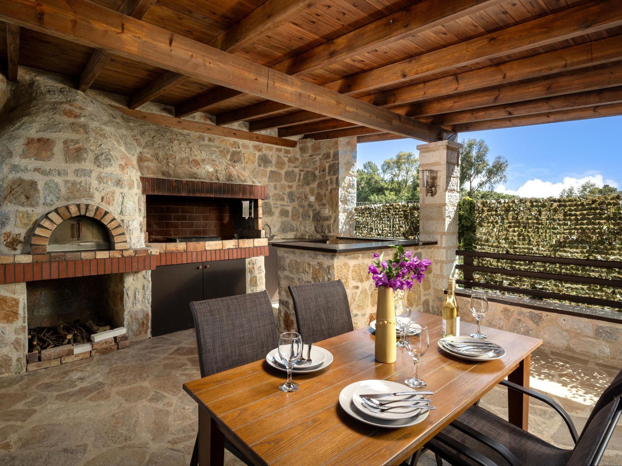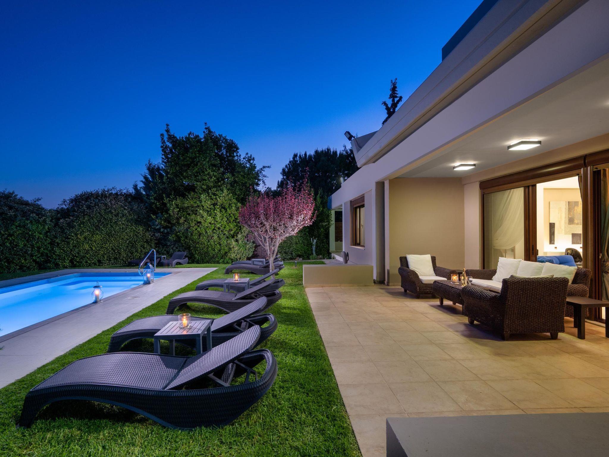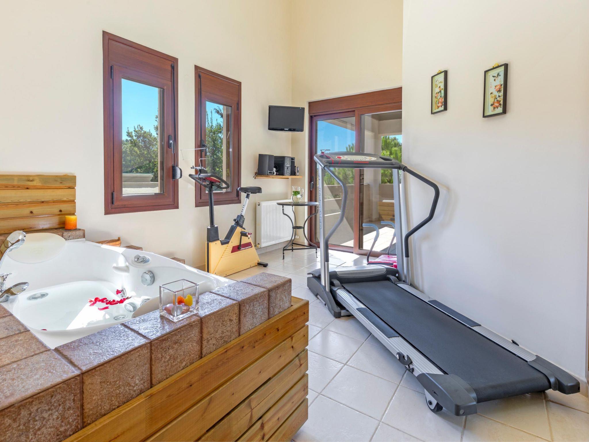 Delta Wellness Villa is set in Ialysos, only a 5-minute drive from the amazing Ixia Beach. It offers a magnificent private swimming pool with reversed swimming system and hydro massage features. Its modern design, along with an incredible position which is quite near to Rhodes City makes this villa the perfect accommodation. The sophisticated decoration and the inviting atmosphere will offer you a memorable stay. It accommodates up to 10 guests and is the perfect family home, set in a serene natural environment.This beautifully crafted villa has 4 fully air-conditioned bedrooms, 2 double-bedded rooms, and 2 with twin beds. Also, there are 2 single sofa beds in the living room. Three of the bedrooms include ensuite bathrooms with showers. There’s another bathroom with a bathtub as well. Also, guests will find a separate room with a and full gym equipment to enjoy a workout or a relaxing moment. There’s a fully equipped open-plan kitchen, suitable for any meal preparation. Guests will find friendly seating areas along with the living room that has a smart TV. There’s free Wi-Fi access throughout the property. The decoration is relaxing and peaceful with modern details and minimal style. Outdoors, there’s the private swimming pool with its sunbeds for your ultimate relaxation, surrounded by beautiful green scenery. There, you can enjoy the hydromassage feature and the reversed swimming system. Also, there’s a BBQ installation and a seating area to enjoy a gathering with your loved ones. This exclusive property offers an optimum position to enjoy the sunlight and the utmost privacy. Delta Wellness Villa is a modernly designed home offering to its guests a wide range of indoor and outdoor amenities that allow relaxing and enjoyable holidays.