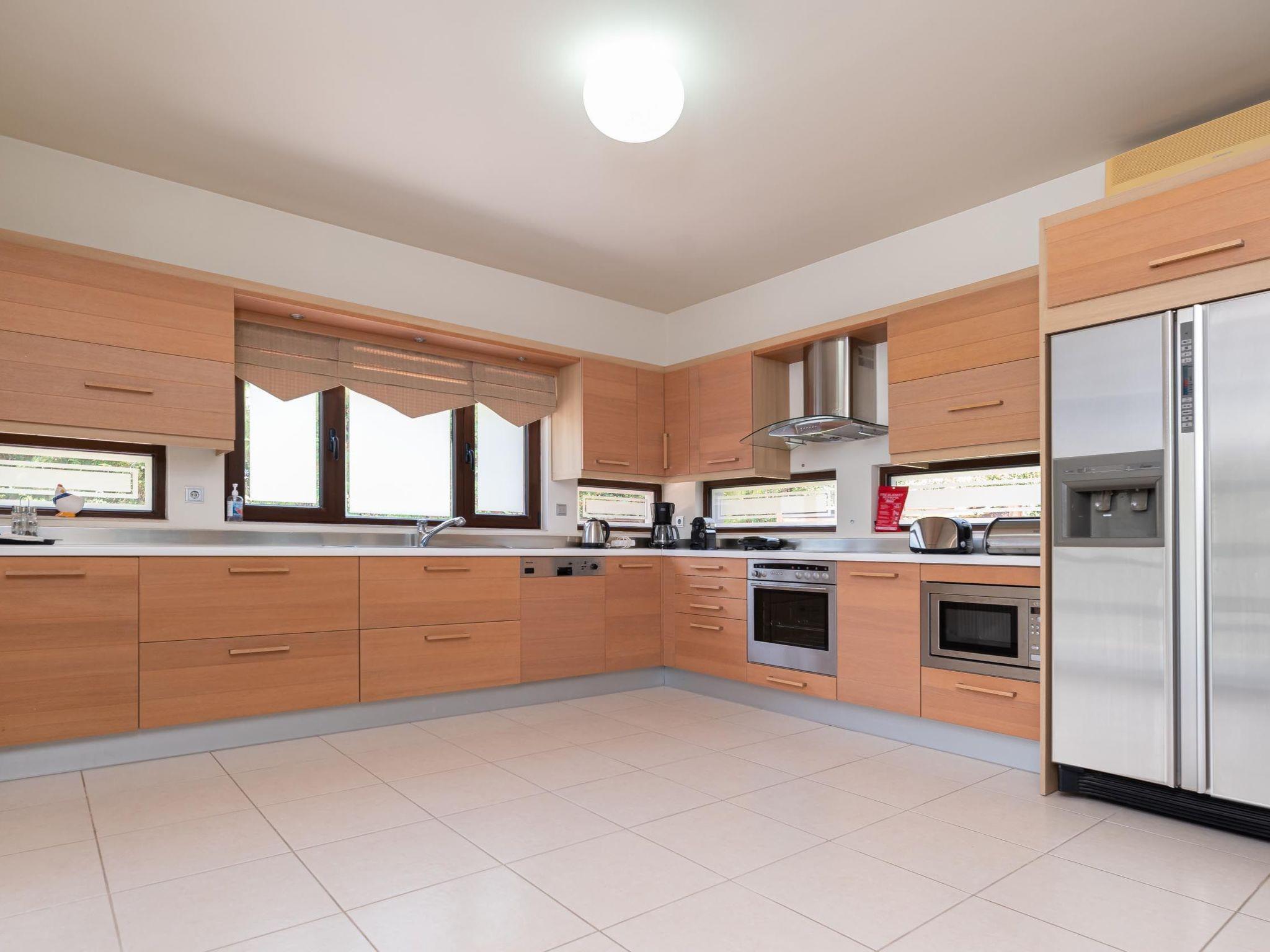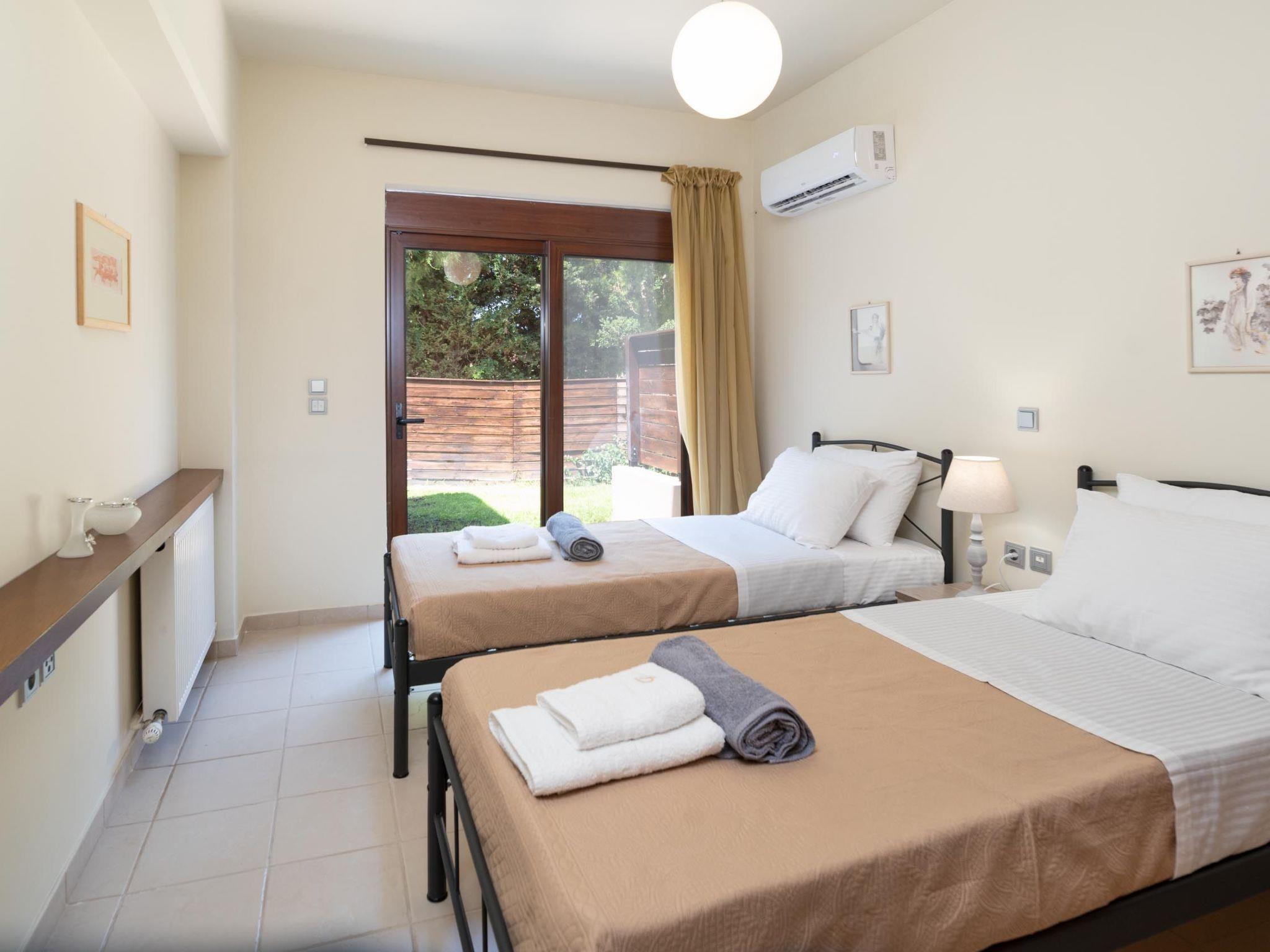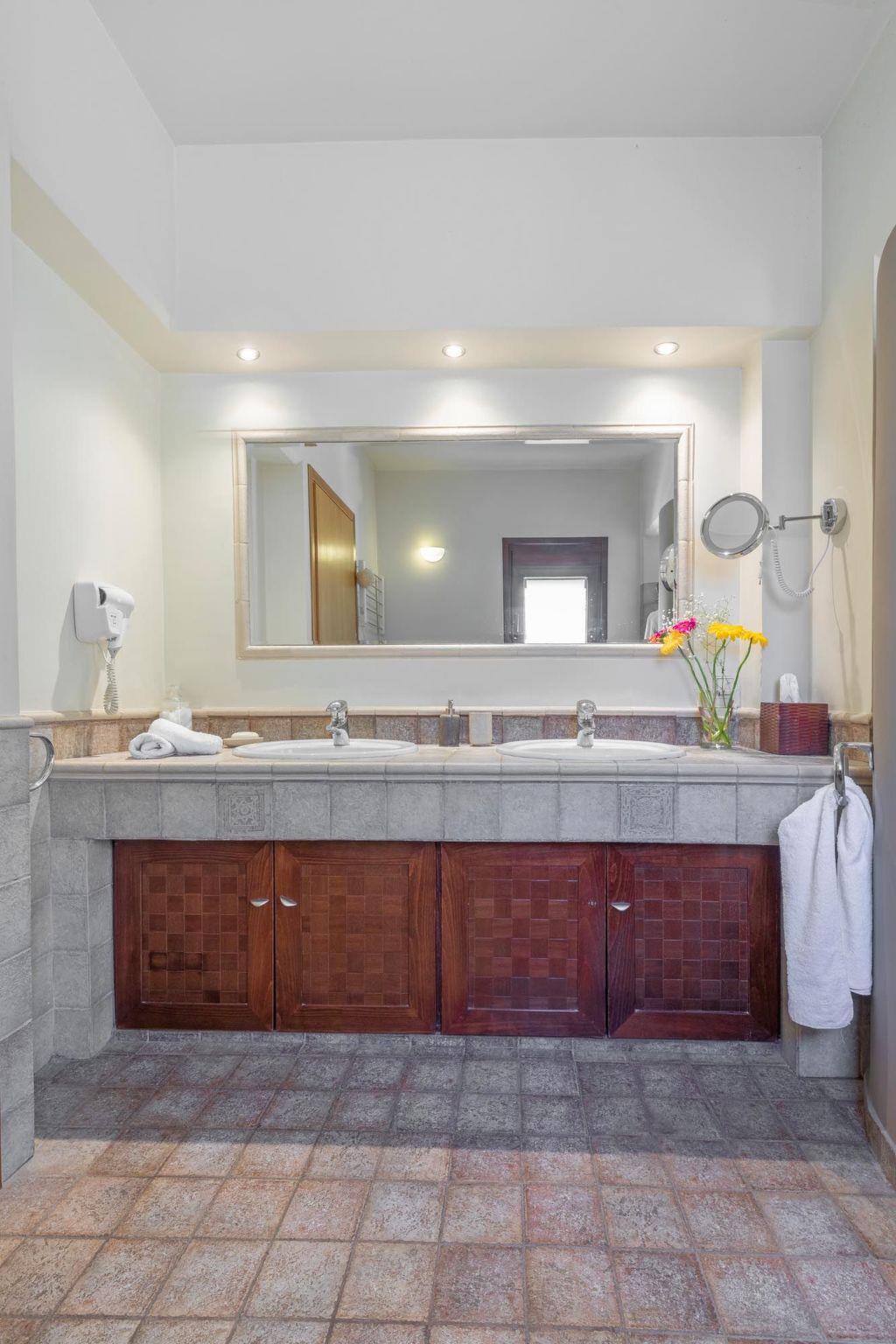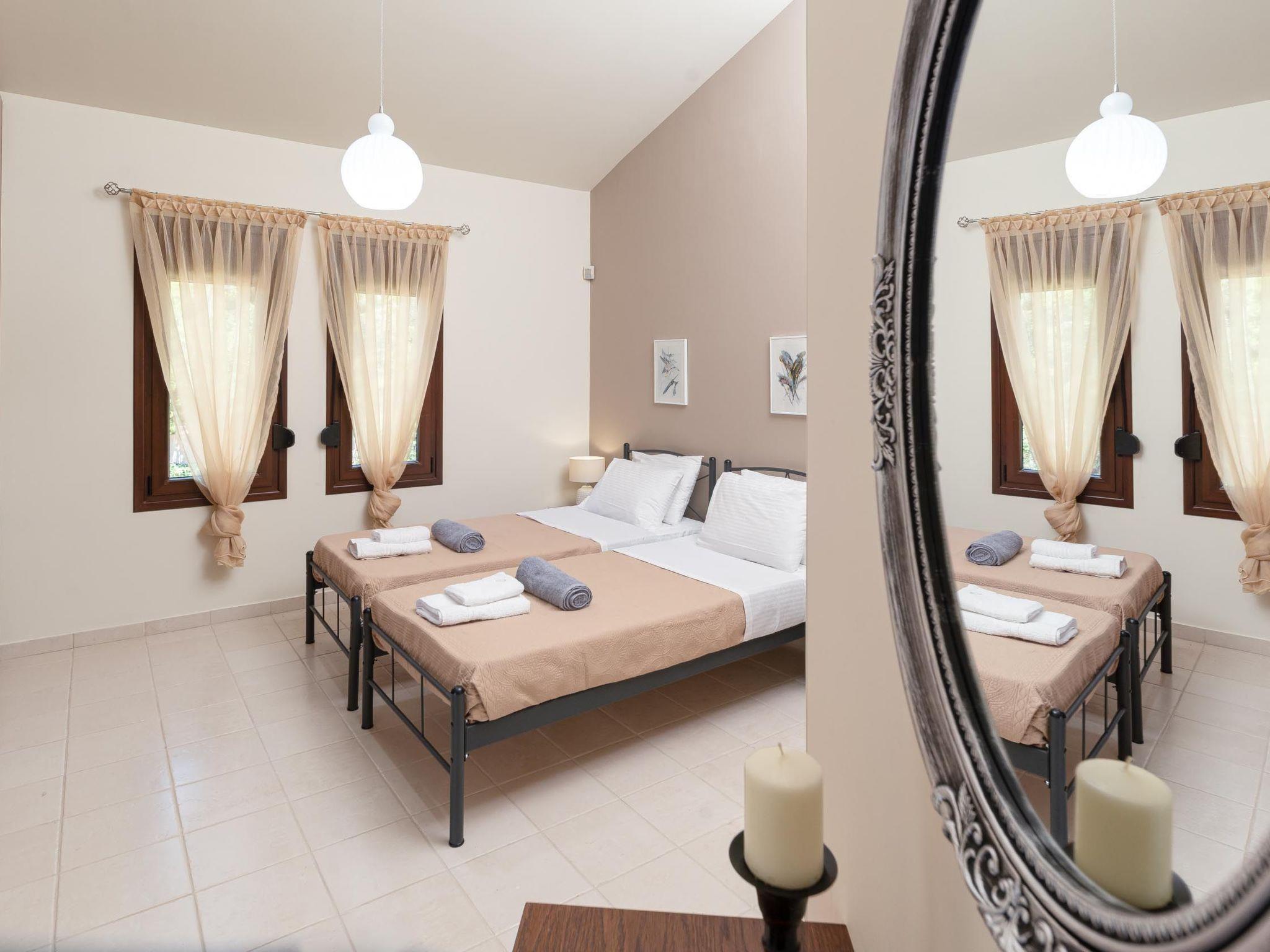 Delta Wellness Villa is set in Ialysos, only a 5-minute drive from the amazing Ixia Beach. It offers a magnificent private swimming pool with reversed swimming system and hydro massage features. Its modern design, along with an incredible position which is quite near to Rhodes City makes this villa the perfect accommodation. The sophisticated decoration and the inviting atmosphere will offer you a memorable stay. It accommodates up to 10 guests and is the perfect family home, set in a serene natural environment.This beautifully crafted villa has 4 fully air-conditioned bedrooms, 2 double-bedded rooms, and 2 with twin beds. Also, there are 2 single sofa beds in the living room. Three of the bedrooms include ensuite bathrooms with showers. There’s another bathroom with a bathtub as well. Also, guests will find a separate room with a and full gym equipment to enjoy a workout or a relaxing moment. There’s a fully equipped open-plan kitchen, suitable for any meal preparation. Guests will find friendly seating areas along with the living room that has a smart TV. There’s free Wi-Fi access throughout the property. The decoration is relaxing and peaceful with modern details and minimal style. Outdoors, there’s the private swimming pool with its sunbeds for your ultimate relaxation, surrounded by beautiful green scenery. There, you can enjoy the hydromassage feature and the reversed swimming system. Also, there’s a BBQ installation and a seating area to enjoy a gathering with your loved ones. This exclusive property offers an optimum position to enjoy the sunlight and the utmost privacy. Delta Wellness Villa is a modernly designed home offering to its guests a wide range of indoor and outdoor amenities that allow relaxing and enjoyable holidays.