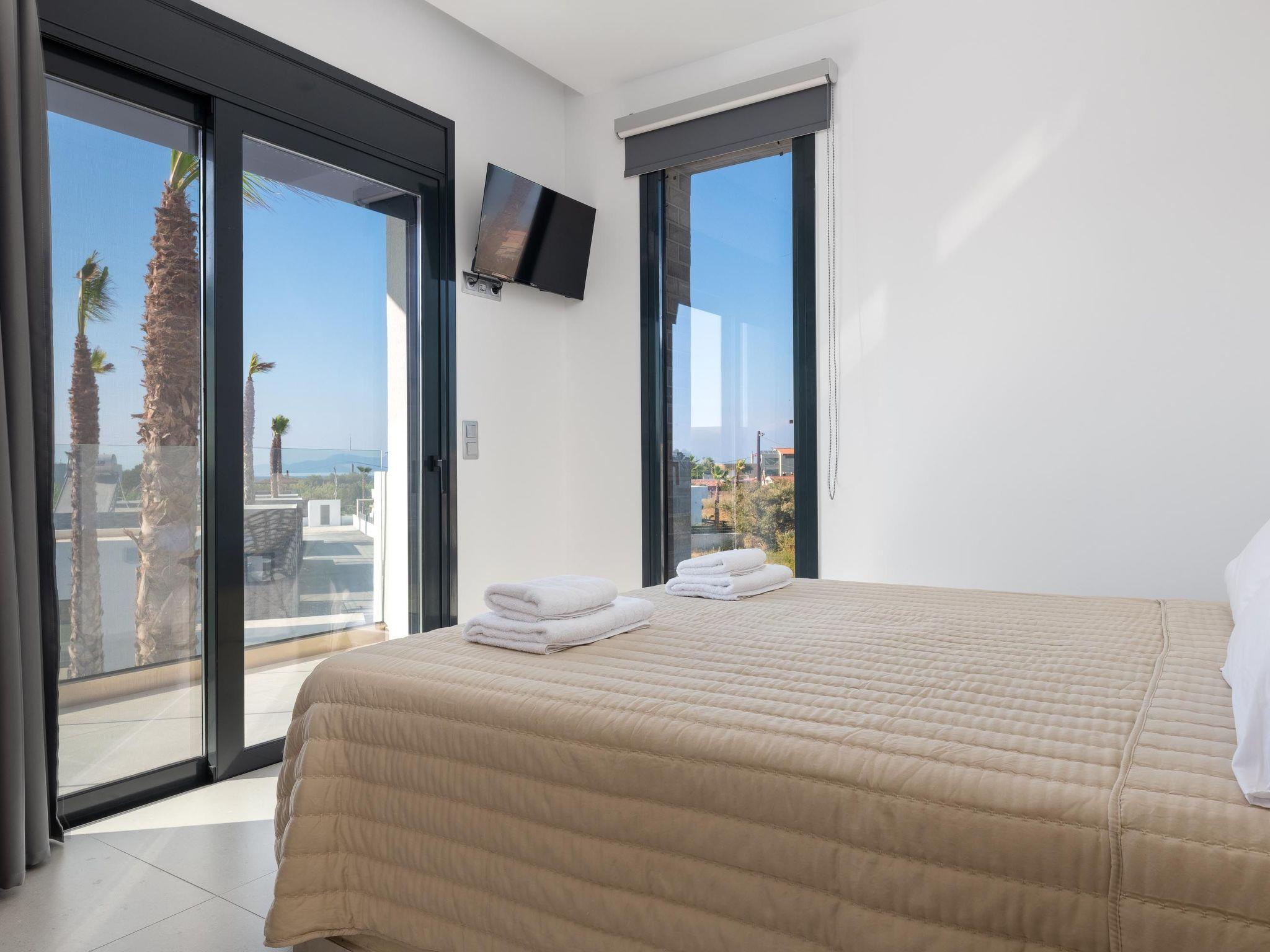 Davlakos Villa Eve in Kremasti is a perfect getaway with a private pool. It features three comfortable double bedrooms and a double sofa bed in the living room, accommodating up to 8 guests. The villa has three bathrooms ,one WC and two showers, with one ensuite in a bedroom. The spacious living area includes a TV for your entertainment and a fully equipped kitchen, making it easy to prepare meals during your stay. The private garden is a peaceful space with outdoor furniture, a dining table, sunbeds and a BBQ for enjoying meals al fresco. With a dedicated private parking space, Davlakos Villa Eve offers convenience and comfort for a relaxing vacation. Ideal for families or groups, this villa provides a peaceful retreat with modern amenities, ensuring a memorable stay in the beautiful Kremasti area of Rhodes.