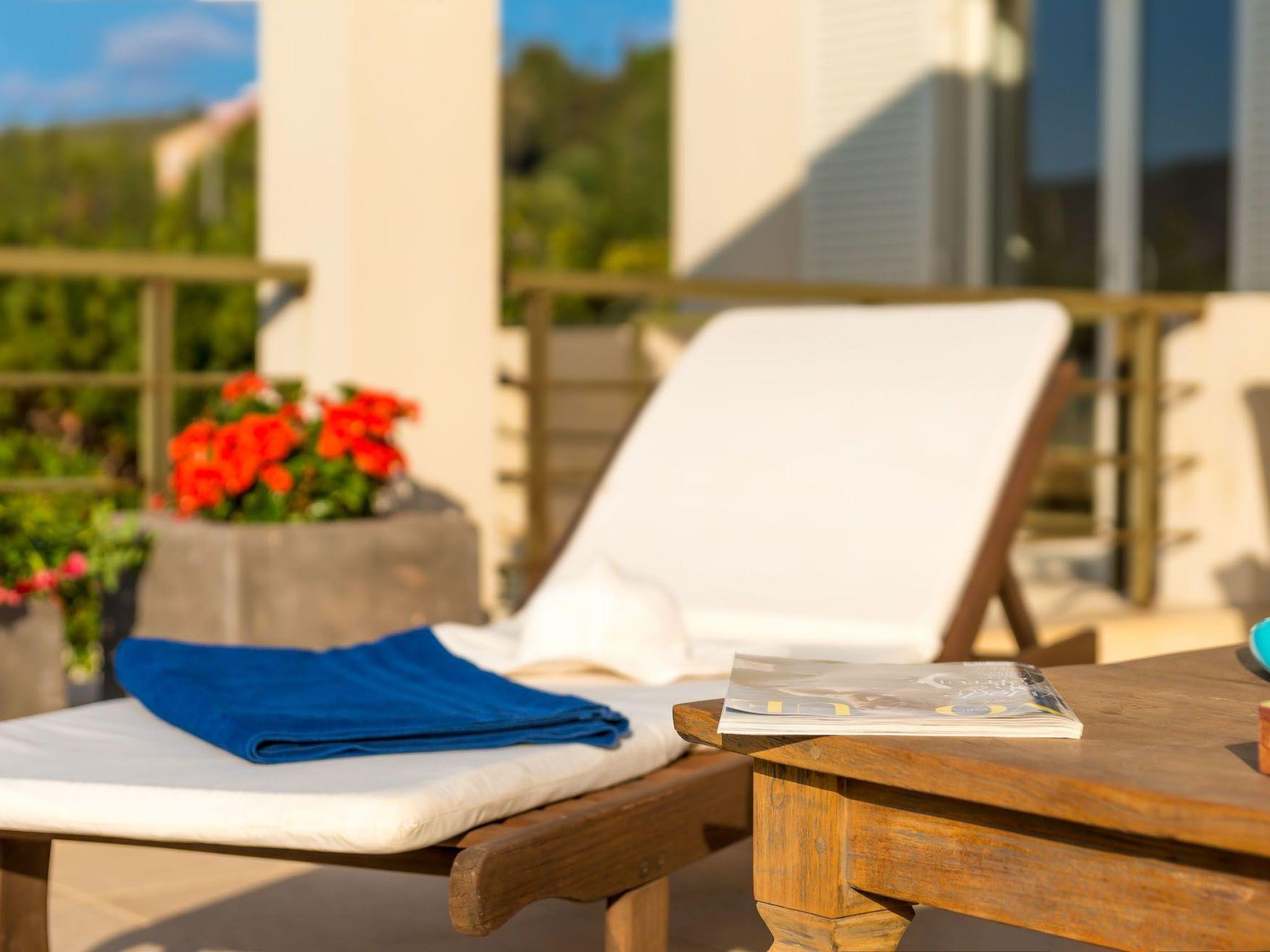 Externally, the villa boasts a meticulously landscaped garden, accessible directly from the veranda, providing a tranquil spot for relaxation and entertainment. The property's outdoor areas include multiple balconies and a deck-styled veranda on the first floor, offering breathtaking views of the surrounding landscape and the mesmerizing sunsets over the sea.
